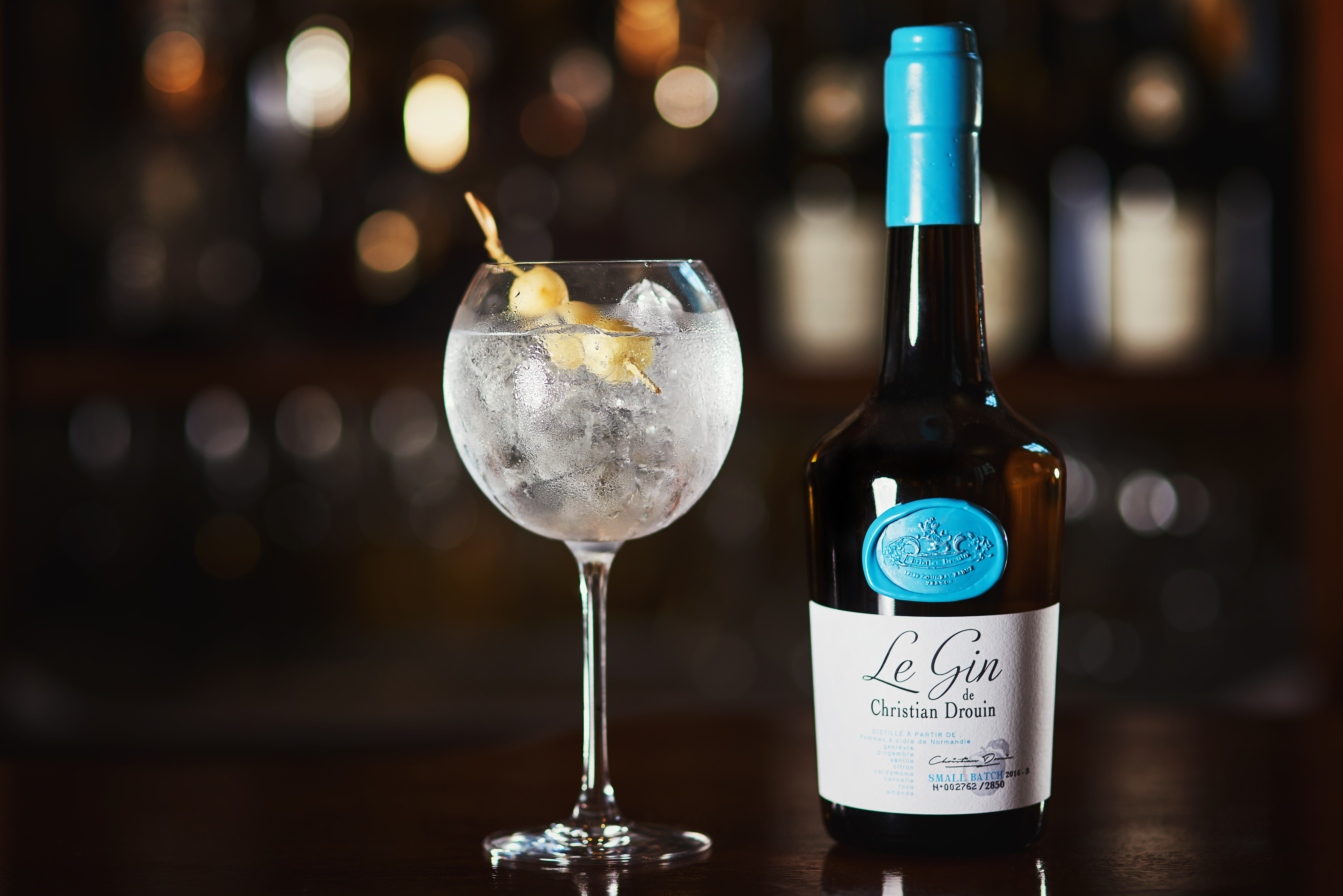 Le Gin von Christian Drouin aus Frankreich ist dagegen der einzige Gin, der neben neutralem Spirituosendestillat auf dem Eau de Vie de Cidre aus rund 30 verschiedenen Apfelsorten basiert, dem Destillat, das nach dem ersten Brennvorgang der Calvados-Produktion entsteht.