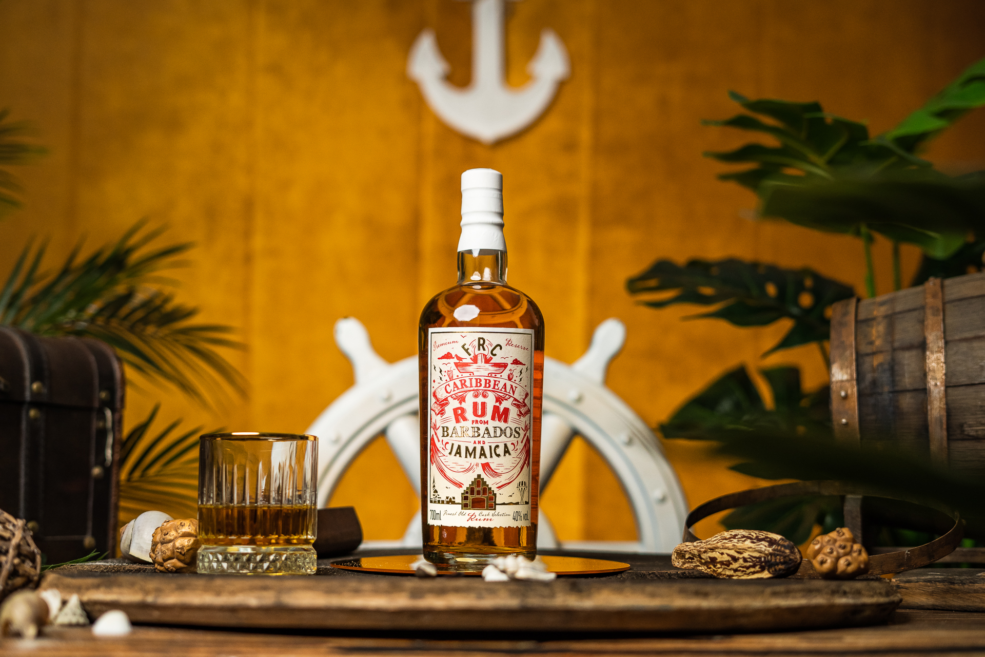 Der direkt sichtbare Inhalt ist in seiner Rezeptur unverändert: „FRC Caribbean Rum from Barbados & Jamaica“ ist und bleibt ein intensiv tropisch-fruchtiger Blend, mit Noten von Kokos, Vanille und würzigem Holz sowie der Süße von Gebäck und Schokolade. Traditionell sowohl in kontinuierlich wie in Pot Stills destilliert, reifen seine Rum-Sorten für fünf Jahre im tropischen Klima zur Premium-Zutat für pure Genussmomente und edle Drinks. Ohne Farbstoffe abgefüllt, kommt der Rum in der neuen Flasche angemessen zur Geltung. Einen Wink an die Vergangenheit bildet dabei die foliengeprägte Hausfassade im unteren Teil des edlen Etiketts: Schaut man hindurch, fällt der Blick auf das alte Flensburg.