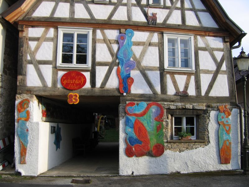 Spätnachmittag verlagert sich das Geschehen mehr auf das Gelände des "Kulturgewächshaus Birkenried", wo die Künstlerin Gudrun Wolf im Außenbereich des Birkenried-Geländes ihr breites Spektrum an Wetterbildern, die speziell für Hausfassaden, Mauern und Zäune geschaffen sind und einem Areal oder Haus eine ganz besondere Note verleihen. Mit ihren Bildern in den beiden Galerien Lärchenhaus und Stadeleck überzeugt sie zusätzlich von ihrem professionellen Umgang mit Farben und ihrer phantasievollen Formensprache. Die Künstlerin ist zur Eröffnung um 17 Uhr anwesend.