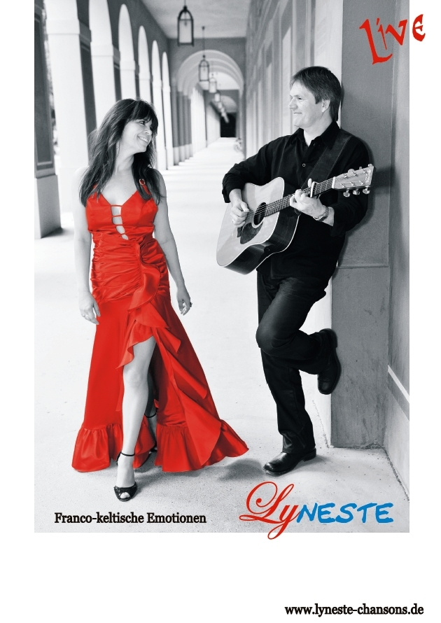 Andy von Treuberg aus Northumberland zupft mit seinen Gitarren melodische Landschaften, in denen Cathy Dangels warme und klare Stimme mal eine kräftige Sonne und mal einen romantischen Mond dazumalt. Und wenn Andy und Cathy im Duett singen, scheinen Sonne und Mond im harmonischen Gleichklang, ein Rendez-vous der verführerischen Klänge. Irische Folksongs wechseln sich dabei ab mit französischen Chansons. Mal reißen Lyneste mit lebensfrohen Rhythmen mit, mal klingen ihre Lieder romantisch und verträumt. Cathy ist das Energiebündel, die „Lady in red“, Andy der Ruhepol. Besetzung: Cathy Dangel, Gesang / Andy von Treuberg, Gitarre und Gesang / Peter Weigele, Querflöte.