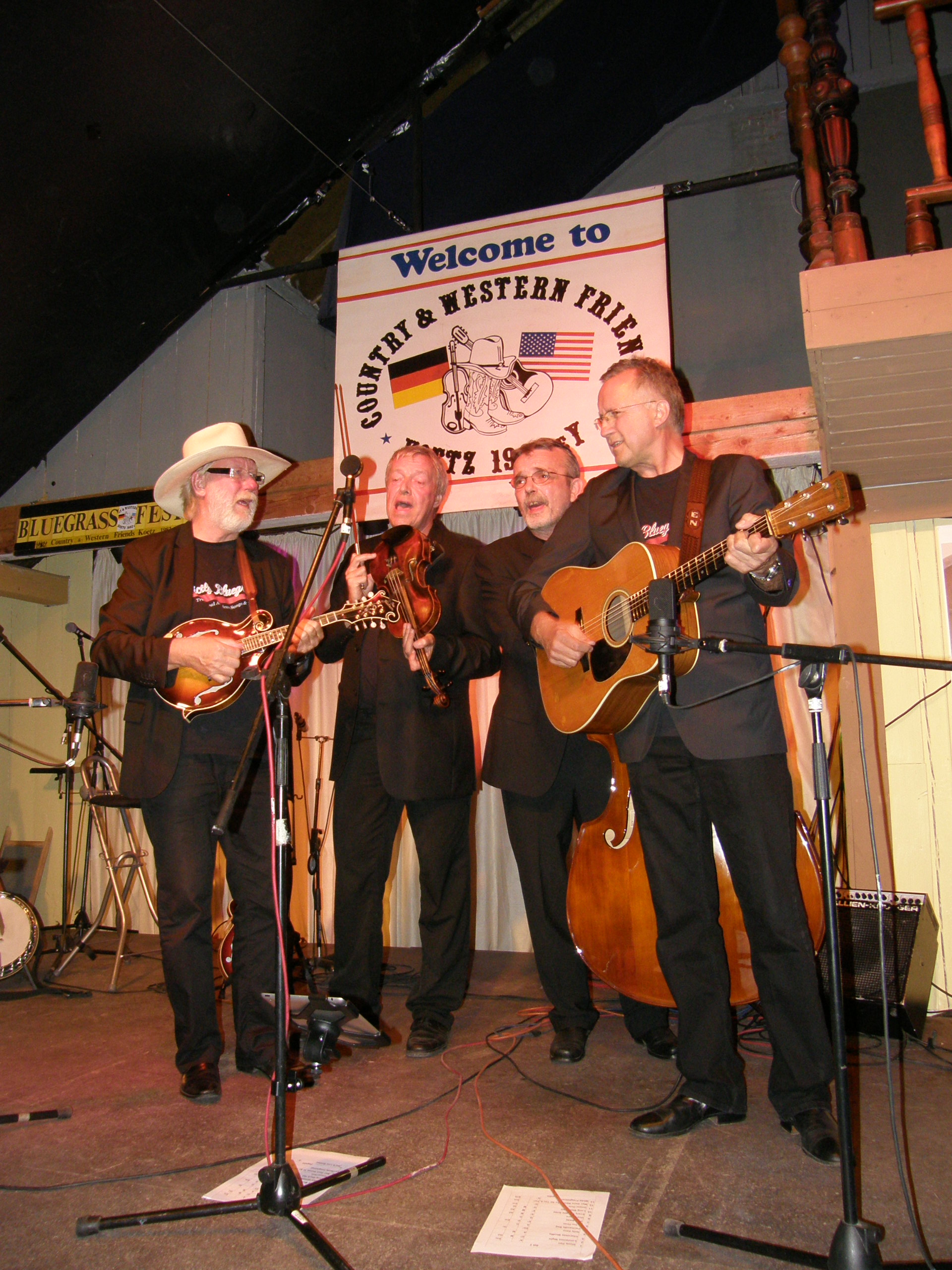"Horse Mountain", "Mr. Big Band, "Rüdiger Helbig & Huckleberry Five", "Strictly Bluegrass" "Dapper Dan Men", und "Four Potatoes" hießen die Formationen, die aus zwei bis fünf Personen bestanden. Dazu kam der Lokalmatador Mandy Strobel als Solist mit einigen Liedern beim Wortgottesdienst in bzw. vor der kleinen Birkenriedkapelle am Sonntagmorgen, den Diakon Peter Trapp wie gewohnt in souveräner Manier leitete. Bluegrass ist eigentlich eine eng definierte Musikrichtung seit den 40er Jahren, hat aber in dieser Zeit manche Veränderungen und Entwicklungen erfahren und so boten die Bands ein weites Spektrum mit Ausblicken in Old Time Music, Swing, Country und selbst Pop. Auch für das weitere Publikum an Birkenriedstammgästen und Spaziergängern offenbarte sich ein relativ abwechslungsreiches Programm. Bald ging es ganz authentisch im Geist der Gründungsväter zu, bald etwas partygerecht aufgepeppt. Alles hat seinen Platz bei einer solchen Veranstaltung, wo für wechselnde Geschmäcker etwas aufgetischt werden muss, die gemeinsame Wurzel Bluegrass aber nicht verloren gehen darf. Das kann eine Gratwanderung werden, aber Veranstalter und Musiker haben sie stilsicher gemeistert. Selbst das Wetter gab seinen Segen dazu, die Sonne schien das ganze Wochenende, erst pünktlich beim letzten Ton um 16:30 Uhr am Sonntagnachmittag fing es an zu regnen.