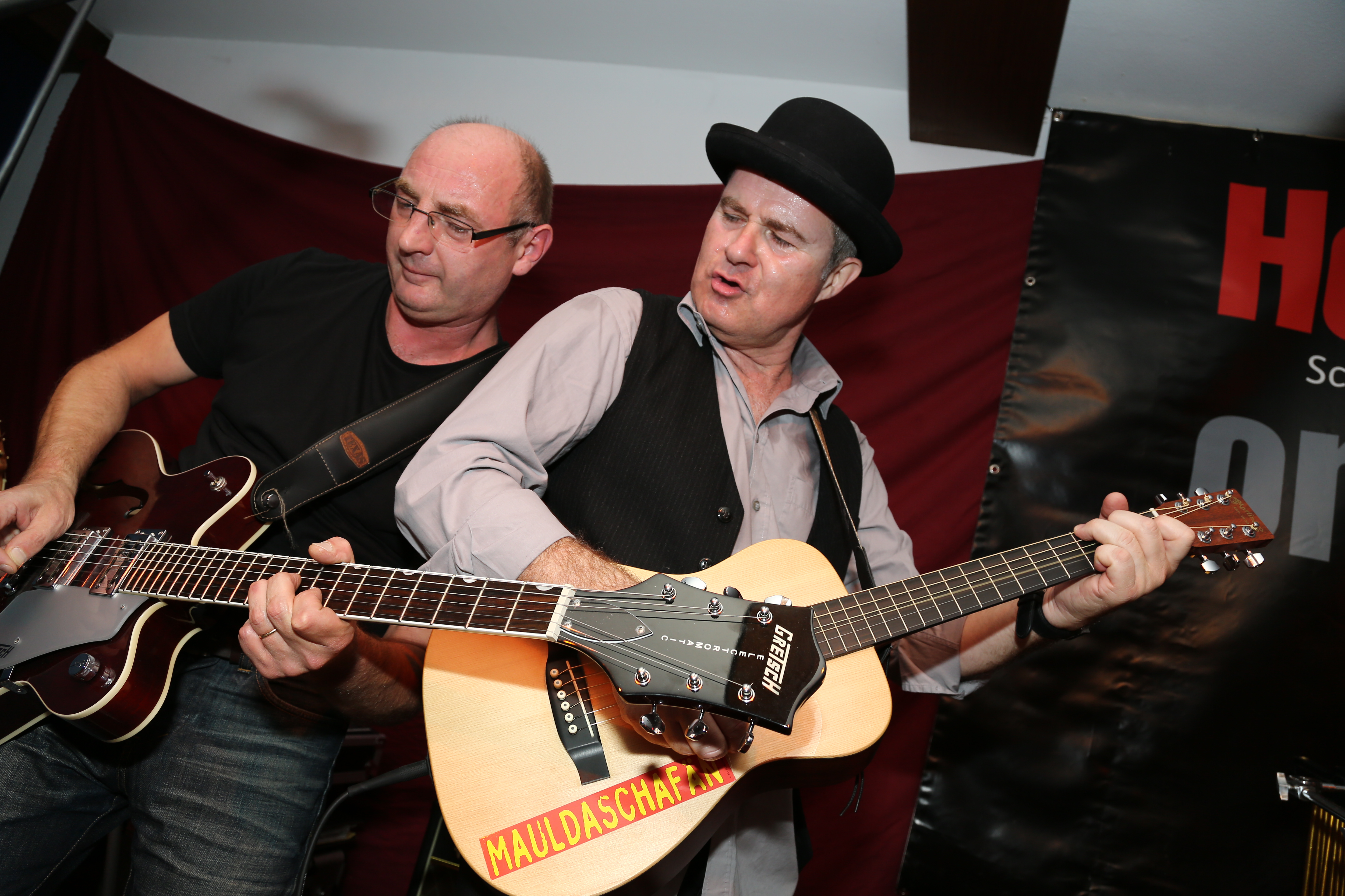 Sie gastieren dann bereits zum zweiten Mal in der Galerie, die sie kleines Teestüble nennen und schwäbeln mit ihren beiden Gitarren munter drauflos, ohne ein Blatt vor den Mund und sich selbst allzu ernst zu nehmen. Bis das Zwerchfell schmerzt und das Grinsen nicht mehr aus dem Gesicht verschwinden will.