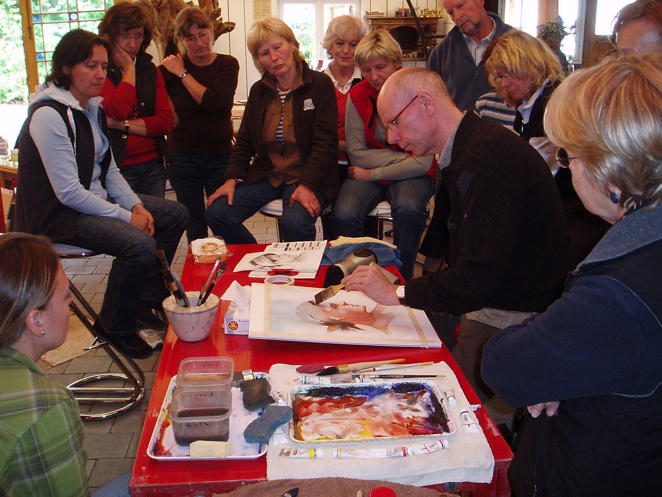 (lifepr) (Gundelfingen, 18.06.2008) Wie in den vergangenen drei Jahren leitete am vergangenen Wochenende der Aquarell-Lehrer und Künstler Martin Lutz einen Intensivworkshop in Aquarell-Technik über drei volle Tage jeweils von morgens um 9h bis Nachmittags 17h.