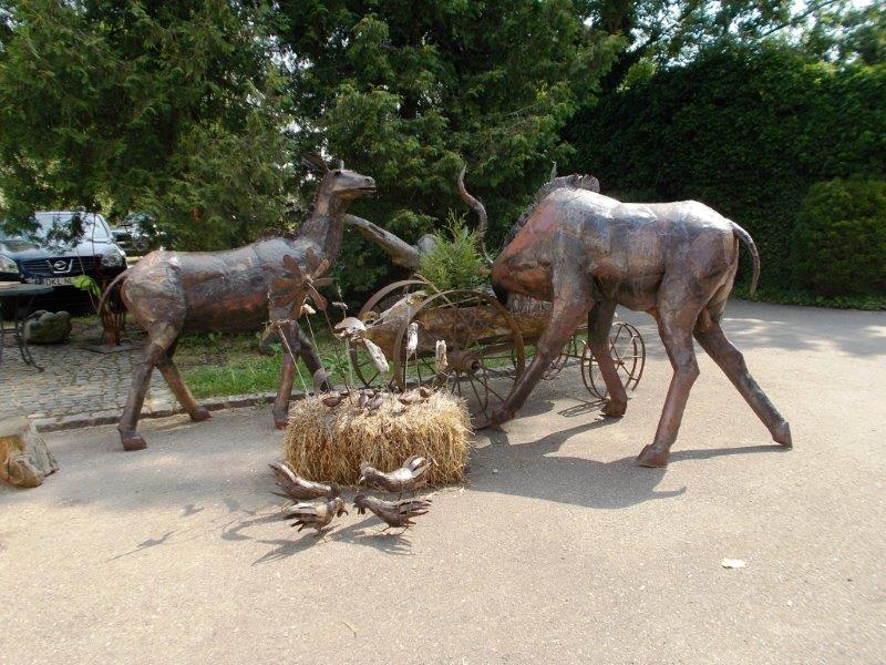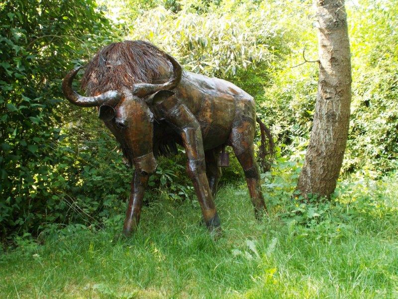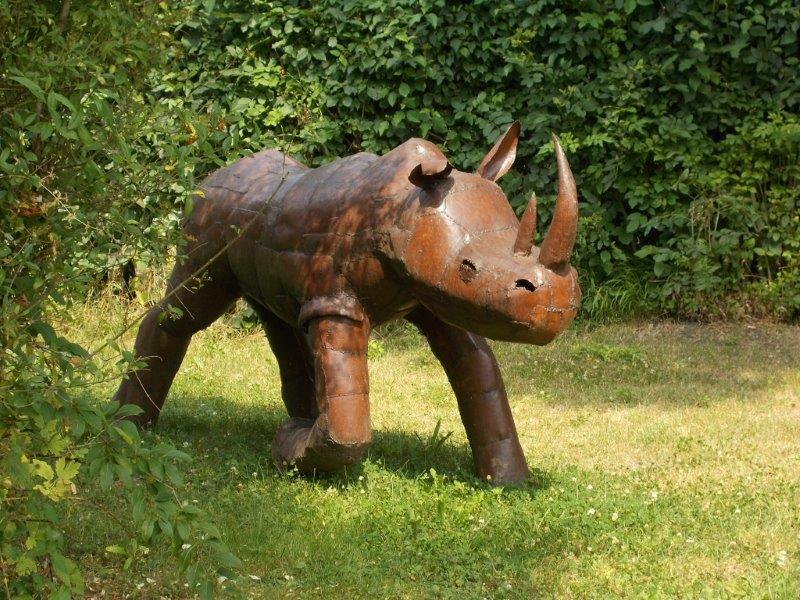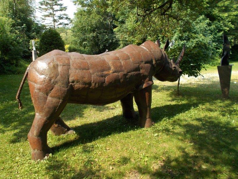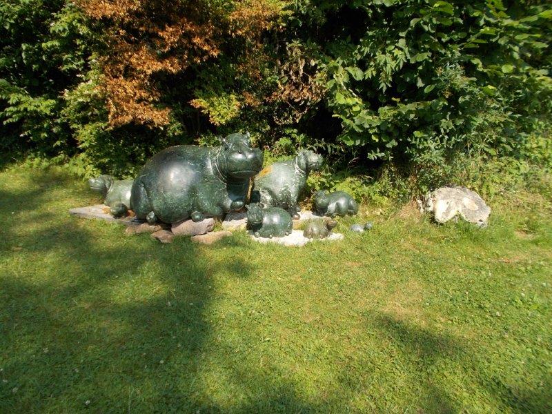 Die Tiere sind alle von namhaften Künstlern in Simbabwe aus dem Blech alter Ölfässer gefertigt, mit faszinierend realistischem Aussehen. Ebenso realistisch muten die aus Serpentin geschlagenen Tierfiguren an. Das größte Nilpferd bringt rund 1 Tonne auf die Waage.