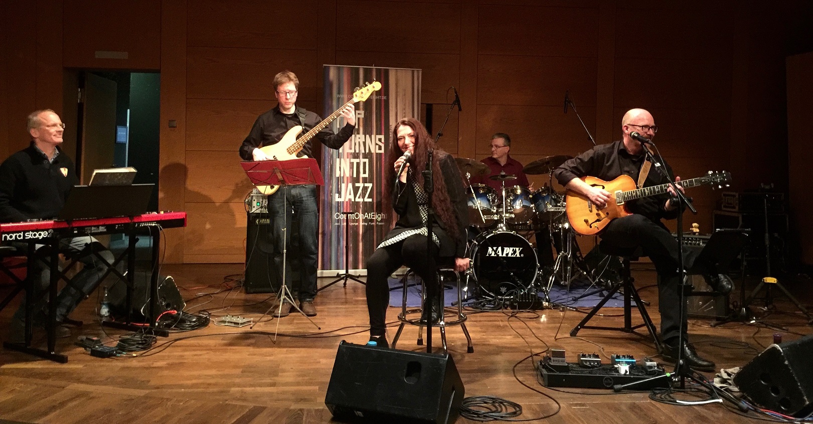 Von zart bis explosiv mischen sich bei CountOnAtEight aus München, Klassiker der Rock- und Popgeschichte mit starken Elementen der Improvisation zu einem würzigen Cocktail aus Jazz, Swing, Funk und Latin. Diese Arrangements schmecken den weltoffenen Gourmets, die - verwurzelt in der Popkultur von den 50ern bis heute - gern reflektieren und genießen. Aber den Reiz des ungewohnten Klangbildes suchen. Puristen könnte die Geschmacksvielfalt verwirren, daher sind Scheuklappen an der Garderobe am besten aufgehoben.