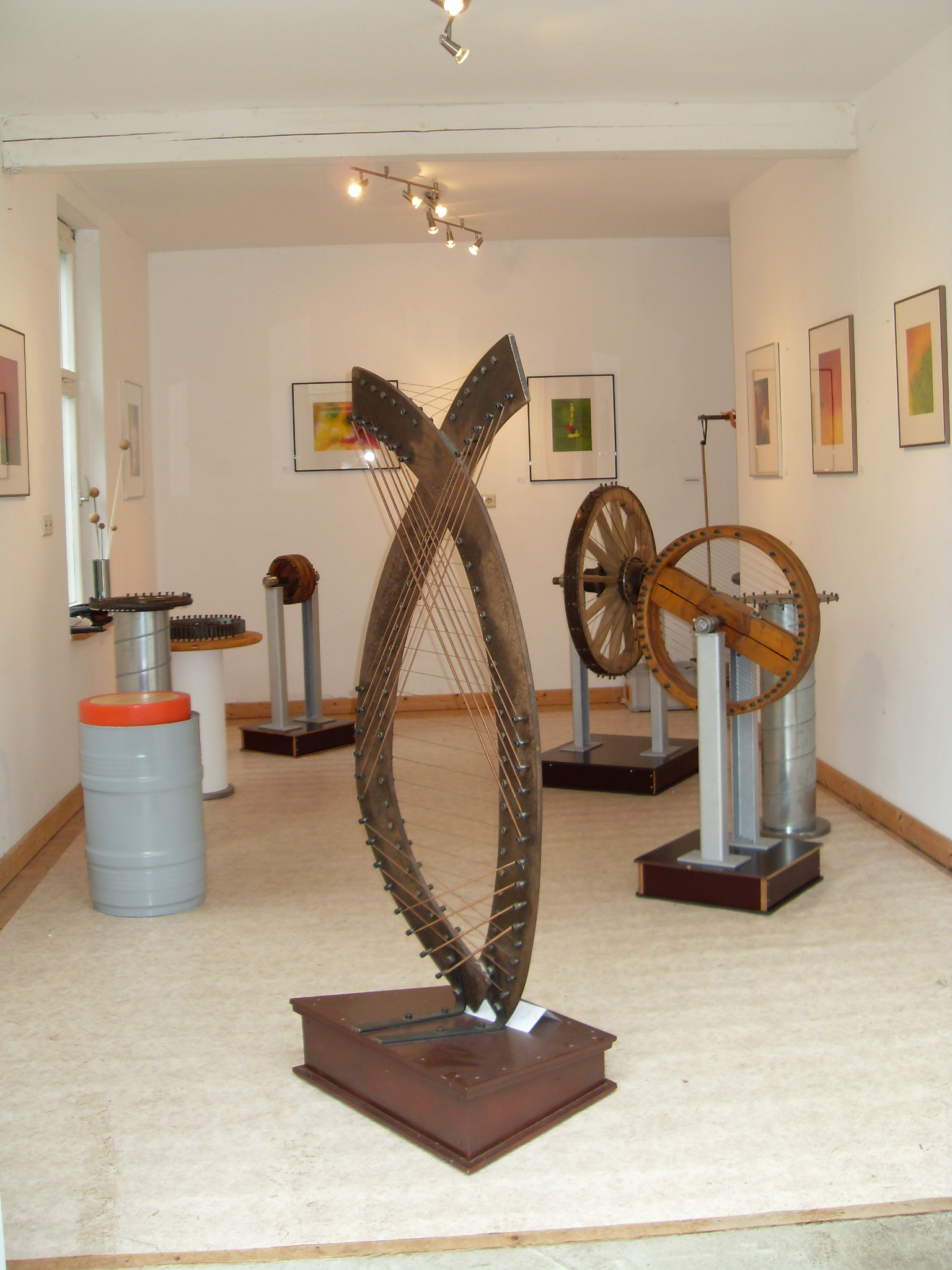 Im weitläufigen Skulpturenpark erwarten den Besucher immer wieder Überraschungen. einsame Steelen aus Stahlteilen, eine Installation aus Fischernetz und Fischen am See, Fragmente zerstörter Konstruktionen, Halbplastiken und Torsos sowie die vielfältigen Frauenfiguren mit einer Spannweite von bis zu fünf Metern machen den Rundgang zum Erlebnis. Ebenso abwechslungsreich gestaltet sich die Öfele-Ausstellung in den beiden Galerien "Stadeleck" und "Lärchenhaus". Hier können Besucher u.a. mit den verschiedenen Klangobjekten spielen, die Ofele aus Holz, Stahl, Blech und Saiten konstruiert hat. Schlagwerkzeuge, um die Saiten zu bearbeiten, liegen für jeden bereit. Fotos unter: www.birkenried.de/...