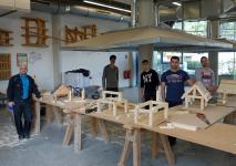 Unter Anleitung des Ausbildungsmeisters Marko Hirschmann sind die Flüchtlinge derzeit damit beschäftigt, Modellhäuser zu zimmern und diese anschließend mit einer Dachdeckung und einer Regenwasserableitung zu versehen.