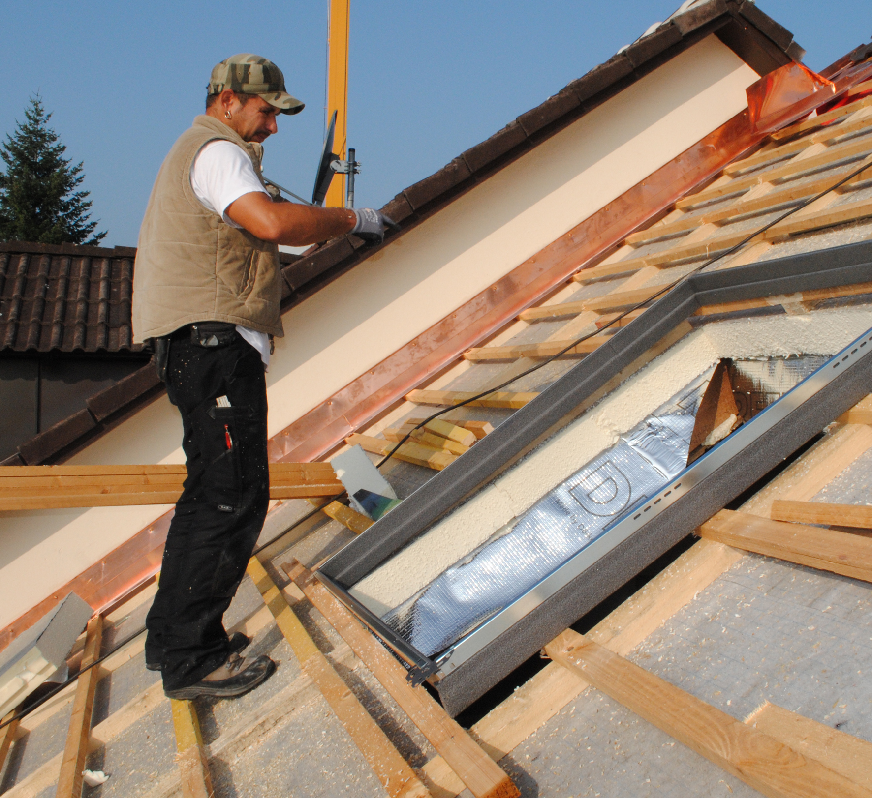 Größere Dachfenster, die in ihrer Breite die Sparrenweite überschreiten, erfordern den Einbau eines sogenannten Wechsels. Da dies ein Eingriff in die Dachstatik ist, darf hier der Heimwerker nicht tätig werden.