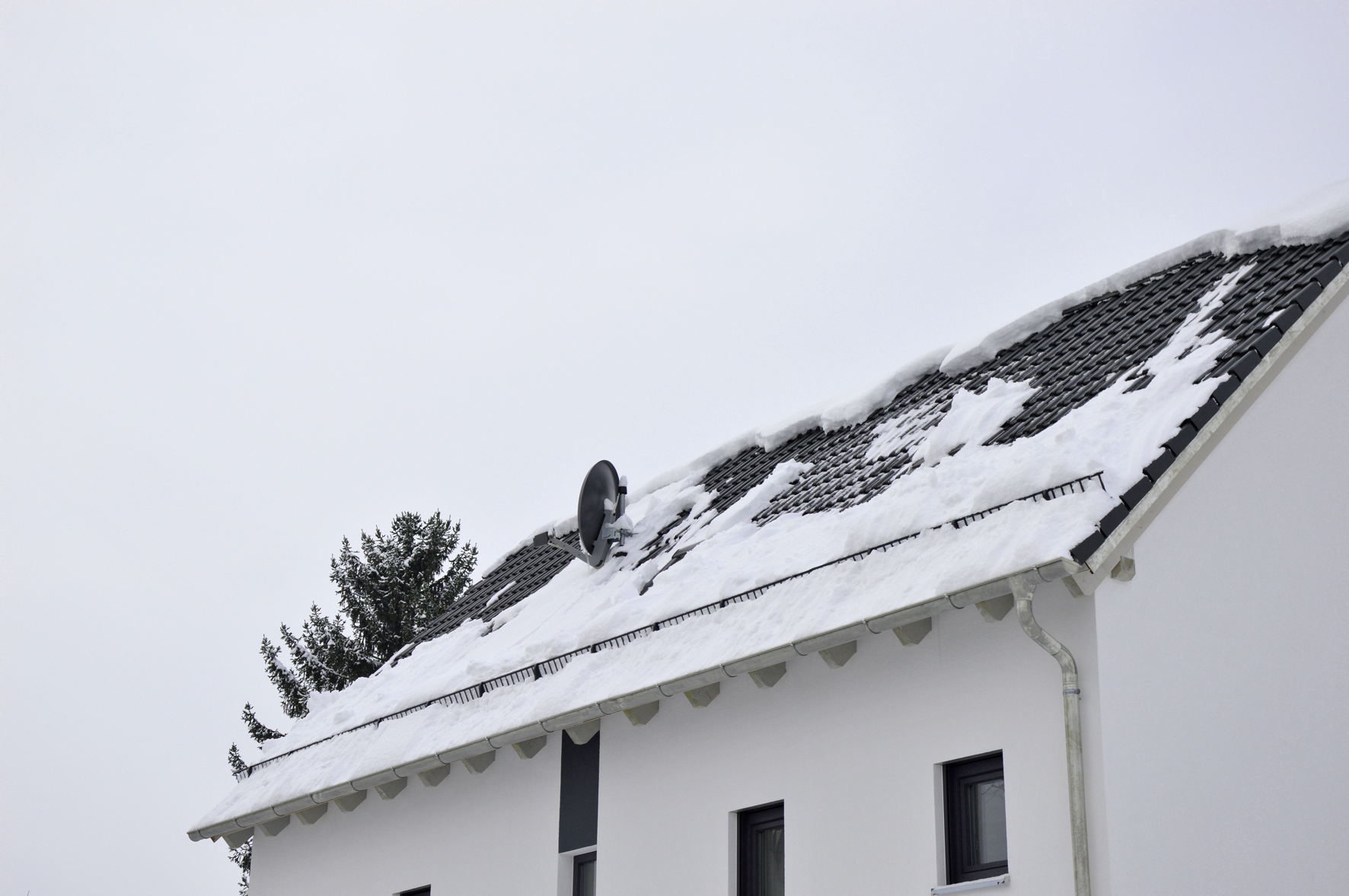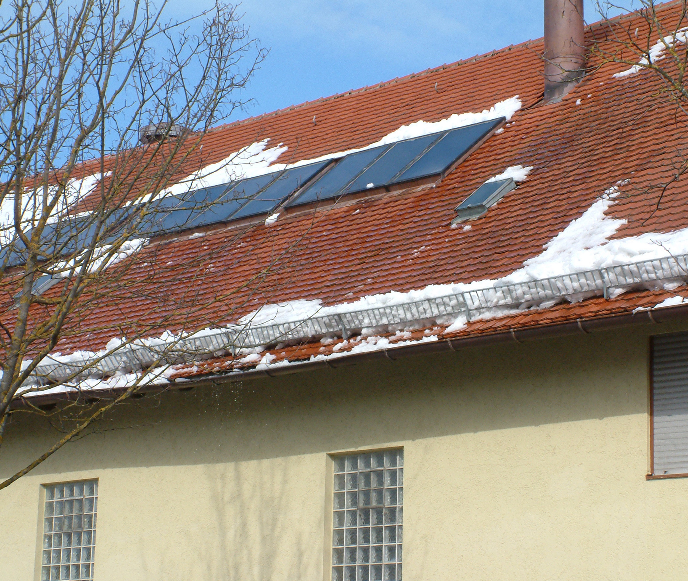 Bei großen Schneemengen kann trotz Schneefangs eine Dachlawine unterhalb des Schneefangsystems abrutschen.