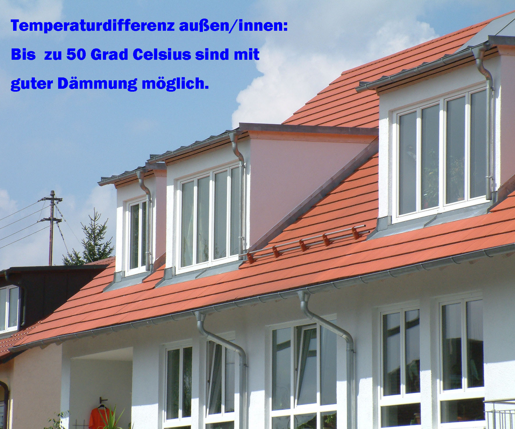 Mit einer optimierten Wärmedämmung können zwischen Dachfläche und Innenraum Temperaturdifferenzen von bis zu 50 Grad C. erreicht werden.
