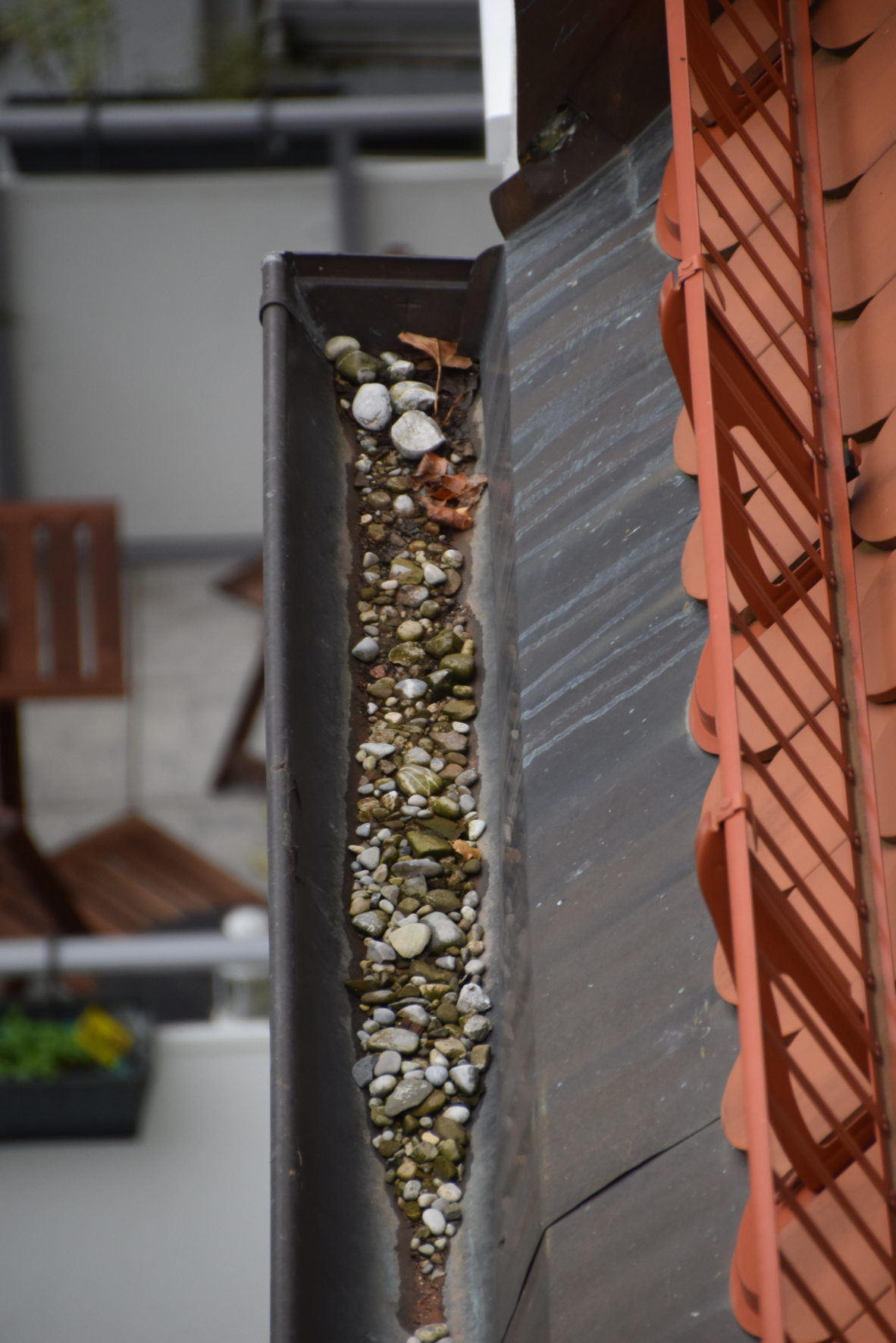 So schön diese ungewollte „Dachbegrünung“ anzusehen ist: Der nächste Starkregen kann die Dachrinne und Fallrohre damit verstopfen.