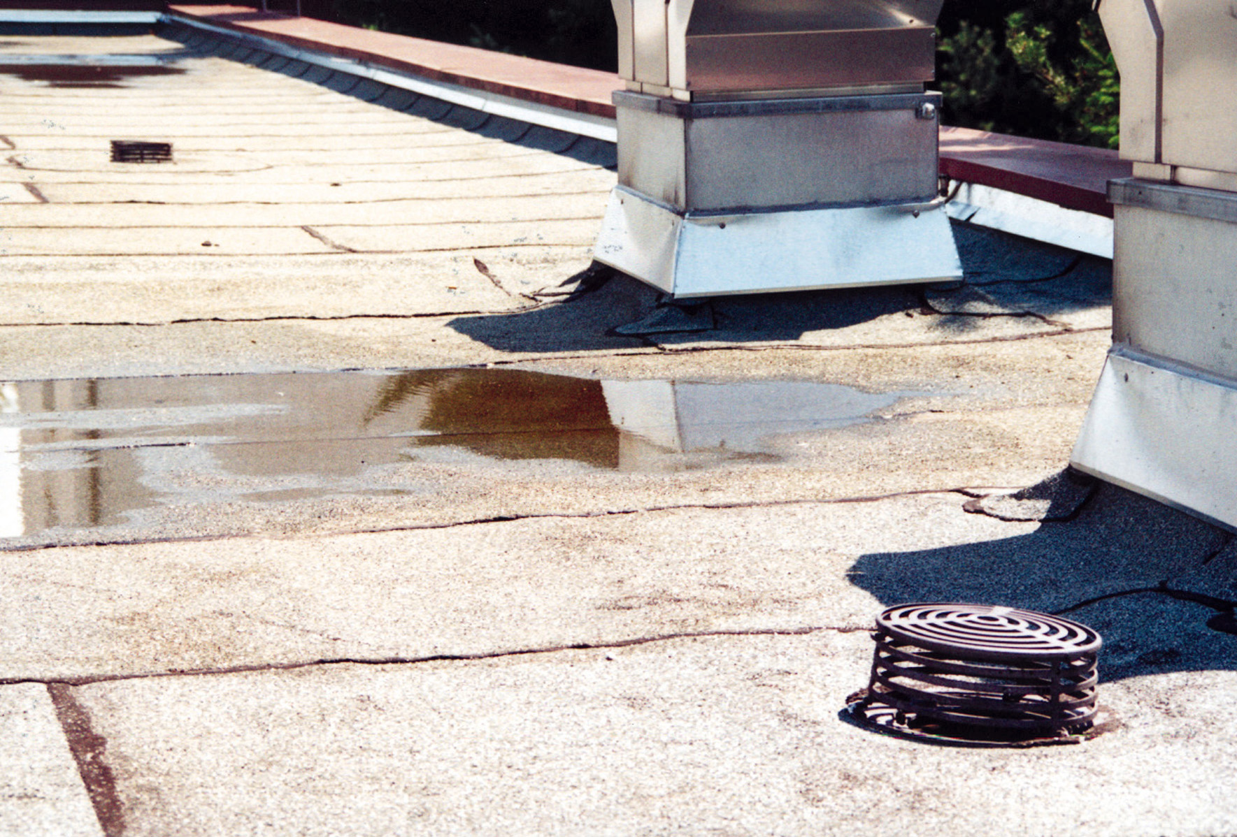 Typische Ursache für unkontrollierte Wasserableitung: die Bemoosung der Eindeckrahmen.