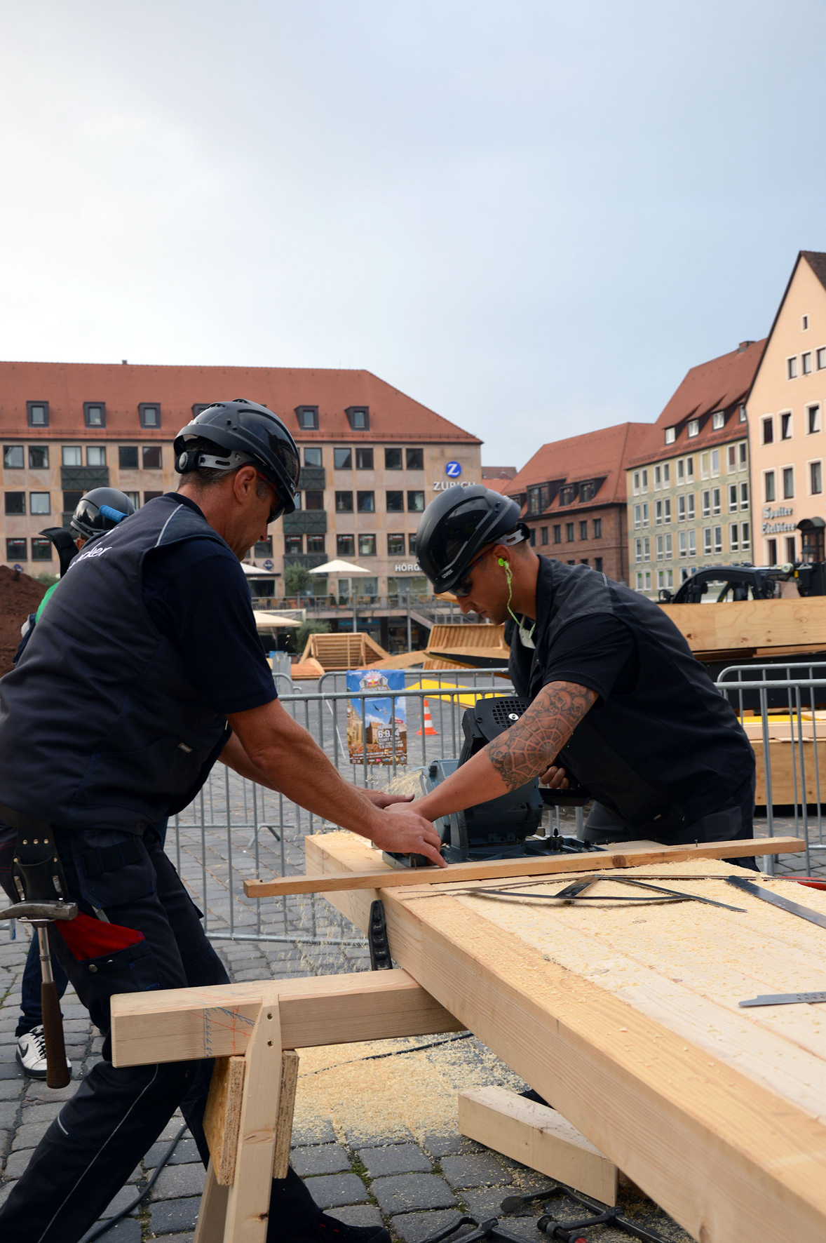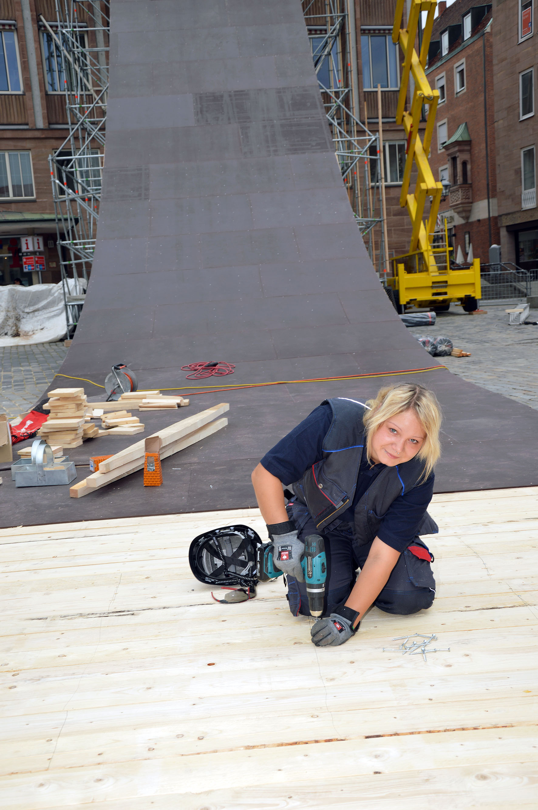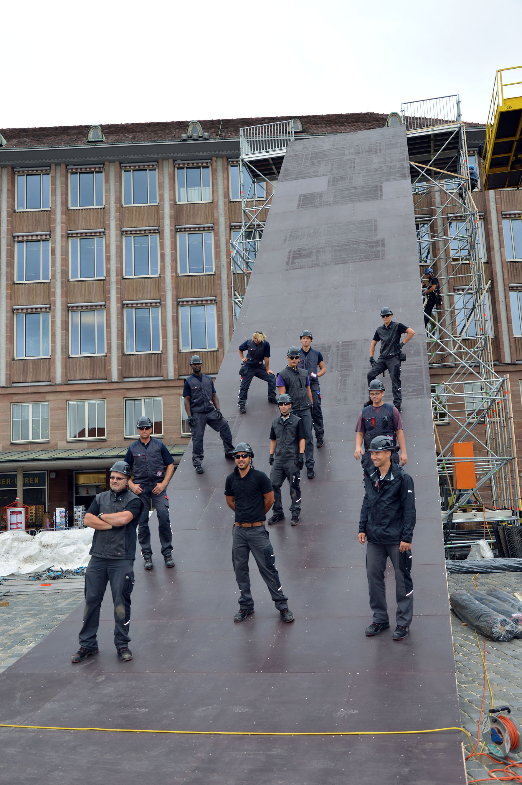 So cool kann Dachdecker sein: Zahlreiche Auszubildende im Dachdeckerhandwerk waren am Bau der größten Rampe des „Red Bull District Rides“ in Nürnberg im Sommer 2014 beteiligt