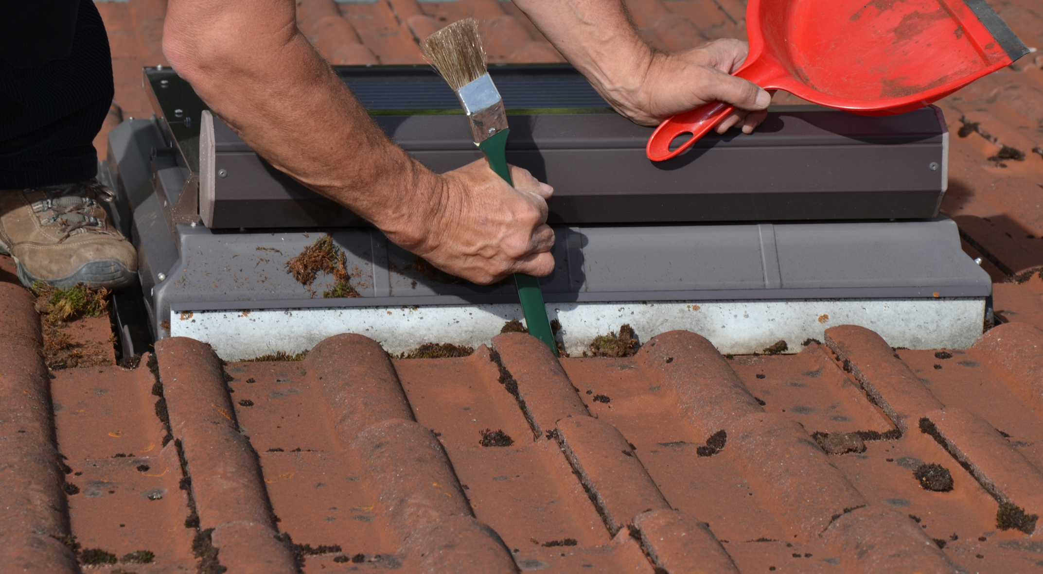 Zur kompletten Dachwartung gehört auch, die Wasserabführung rund um Dachfenster wieder herzustellen. Aber Achtung: Dies hat nichts mit der oft mittels Haustürgeschäft angebotenen und meist überflüssigen „Dachreinigung“ zu tun.