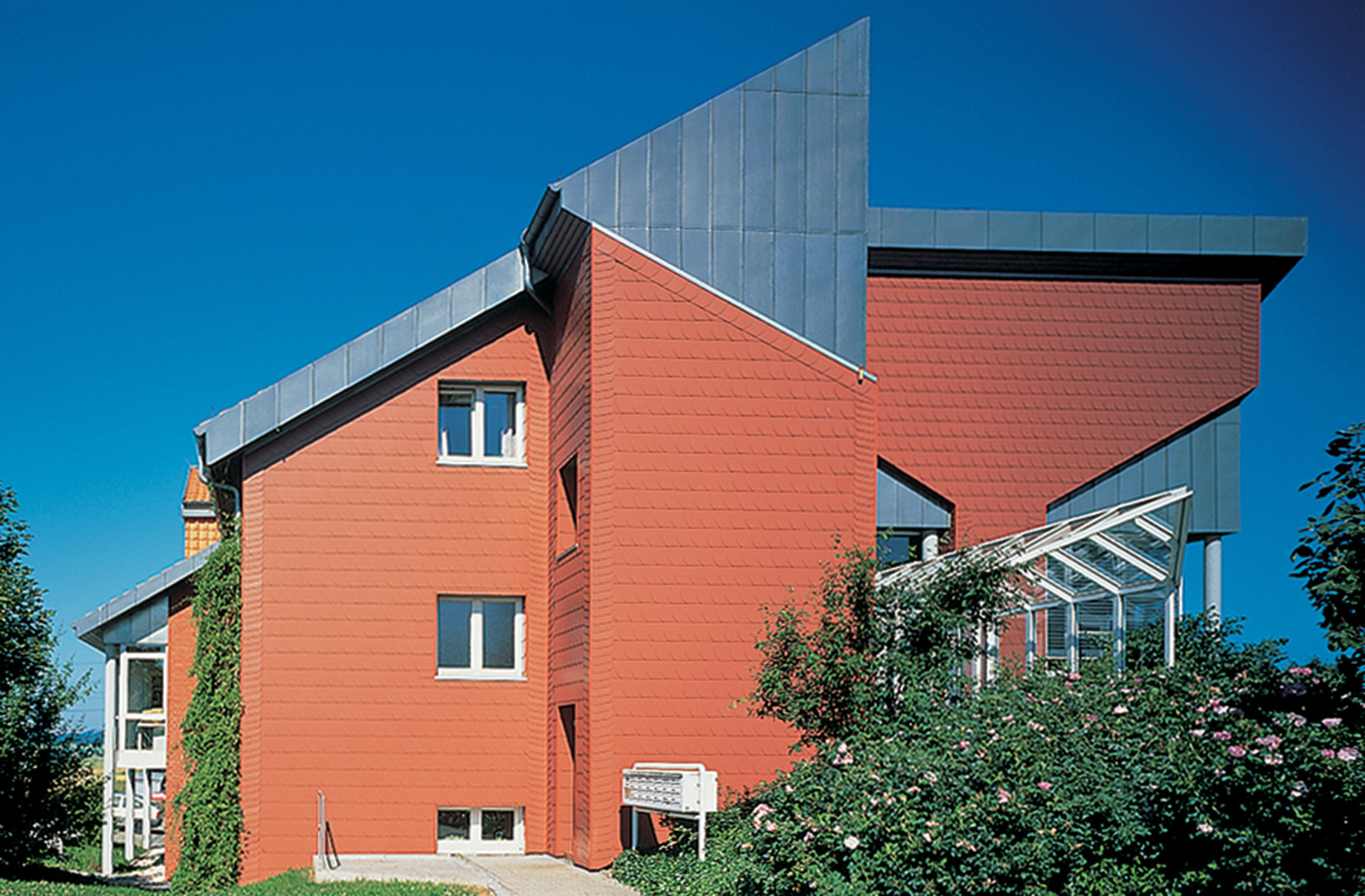 Klassik trifft Zukunft: Auch mit Schiefer - dem traditionellen Dachdecker-Werkstoff - lassen sich moderne Fassadensysteme gestalten