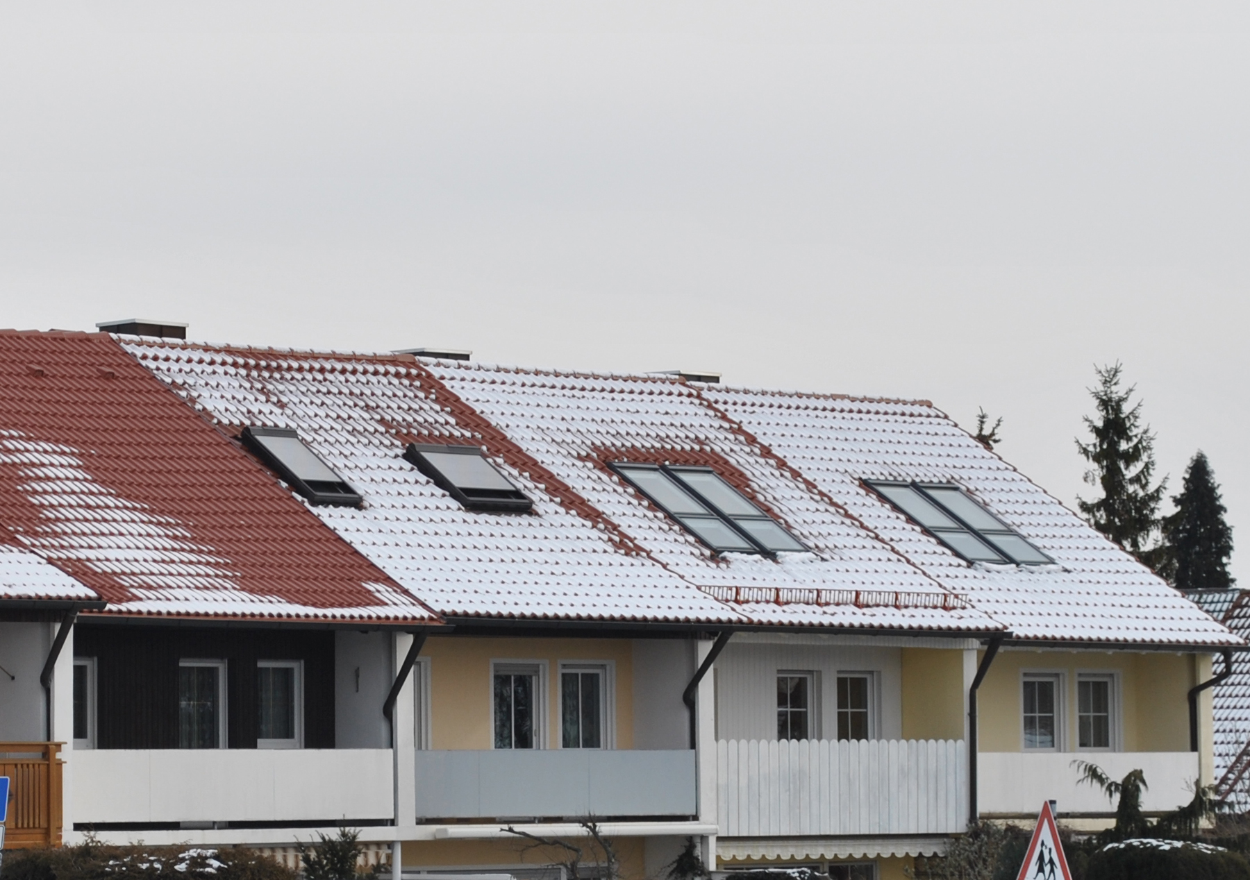 Auf manchen Dächern zeichnen sich jedoch im Winter raureif- und schneefreie Flächen ab – meist im Bereich des Dachfirstes oder rund um Dachfenster. Dies kann ein erster Hinweis auf Wärmebrücken sein. Solche Wärmebrücken entstehen beispielsweise, wenn der Anschluss von Dämmung und/oder Dampfsperren an Fenstern nicht optimal ist. Ein häufiger Fehler, der beim Einbau oder Fenstertausch durch Heimwerker auftritt. Auch der oberste Dachbereich, der First, ist auf manchen Dachflächen binnen kürzester Zeit schneefrei. Dies könnte ebenfalls ein Hinweis auf eine nicht lückenlose homogene Dämmschicht sein.