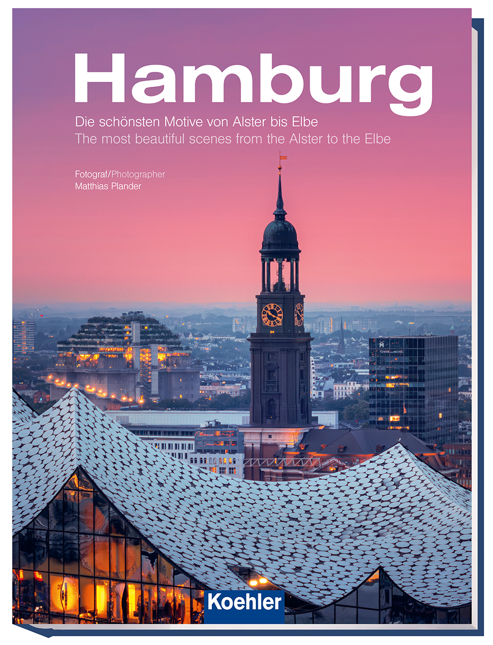 „Hamburg – Die schönsten Motive von Alster bis Elbe“ von Matthias Plander ist zweisprachig (deutsch/englisch) im Hardcover-Format 23,5 x 39 cm zum Preis von 29,00 € unter anderem im Buchhandel und im Onlineshop des Verlags auf www.koehler-mittler-shop.de bestellbar.