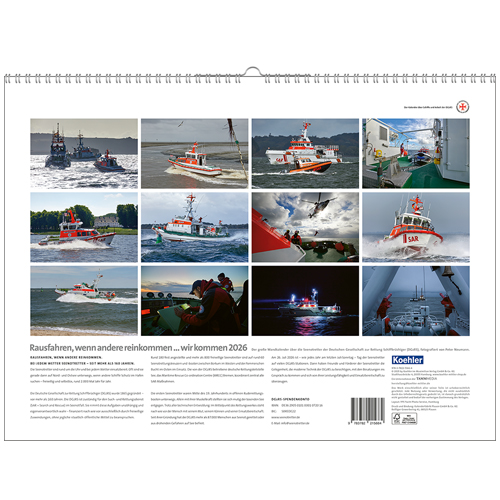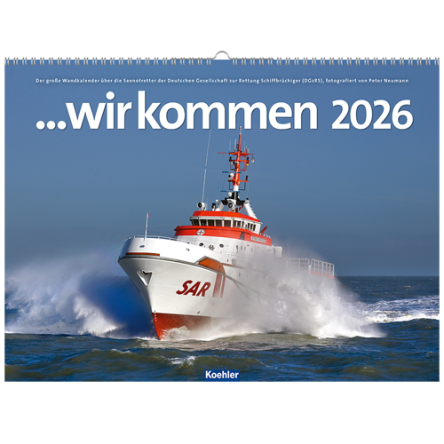 Die gesamte Arbeit der DGzRS wird nach wie vor ausschließlich durch freiwillige Zuwendungen finanziert. Im Verkaufspreis des Wandkalenders von 29,00 Euro (in Österreich 29,90 Euro, in der Schweiz 34,80 sFr.) ist eine Spende in Höhe von 3,00 Euro pro Exemplar enthalten. Der neue Kalender für 2026 ist im Onlineshop des Verlags auf www.koehler-mittler-shop.de im Seenotretter-Shop unter seenotretter-shop.de, oder im Buchhandel erhätlich.