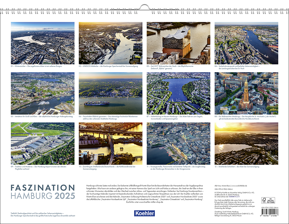 „… wir kommen 2025“ von Peter Neumann sowie „FASZINATION HAMBURG 2025“, „FASZINATION NORDSEEKÜSTE 2025“ und „FASZINATION SCHLESWIG-HOLSTEINISCHE OSTSEEKÜSTE 2025“ von Martin Elsen sind jeweils im Format 56 x 41,5 cm und zum Preis von 29,95 € unter anderem im Buchhandel und im Onlineshop des Verlags auf www.koehler-mittler-shop.de erhältlich.