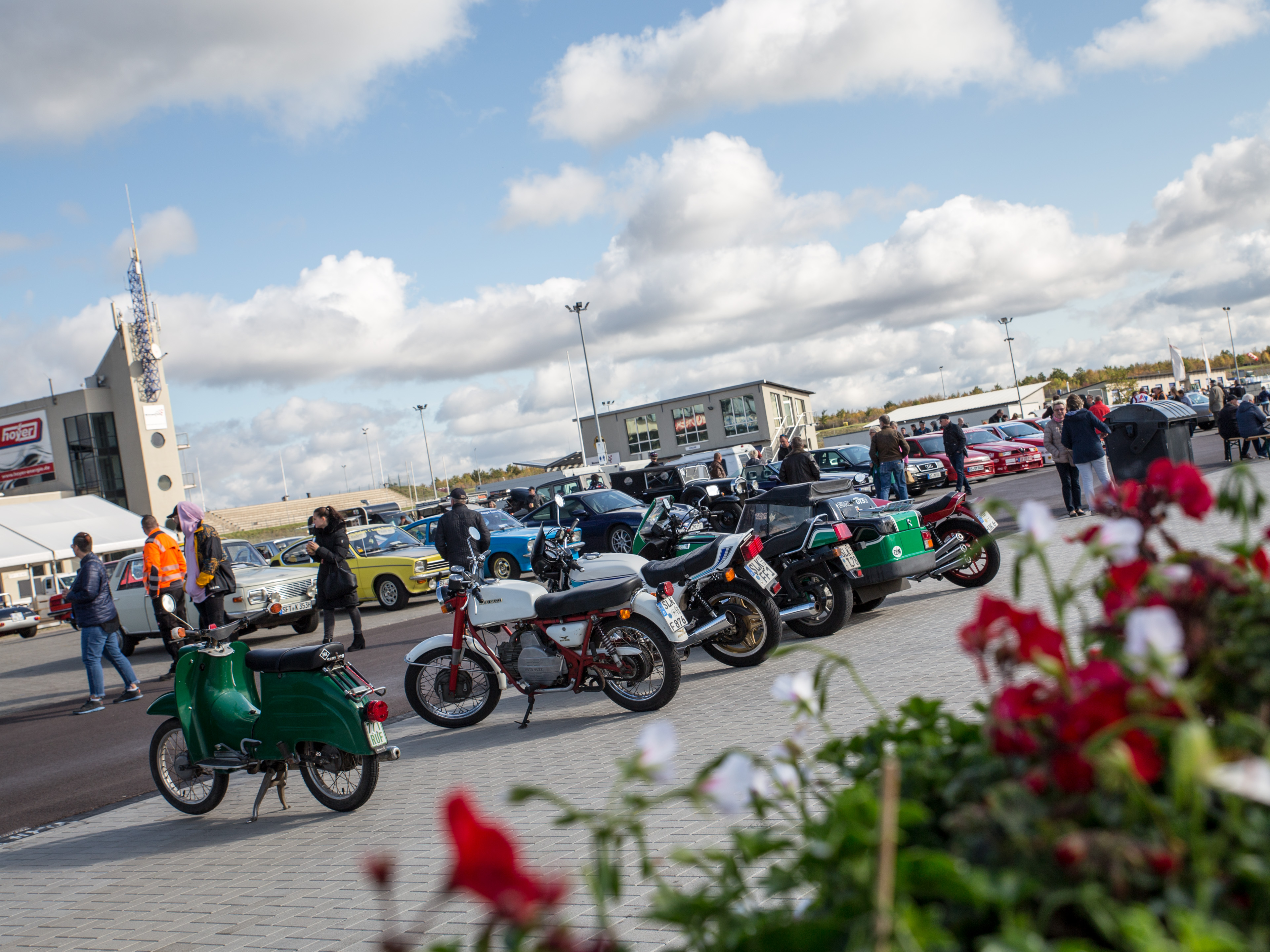 Das Oldtimertreiben wurde auf der Rennstrecke ergänzt vom Saisonabschluss-Motorradtraining der hauseigenen Racing Academy. Neben den Trainingsteilnehmern reihten sich im Fahrerlager des Rennstreckengeländes die zahlreich erschienenen klassischen Fahrzeuge einschließlich Traktoren und LKWs ein. Auch ein kurzer Schauer tat bei größtenteils besten Bedingungen der Begeisterung der Besucher um das zweite Herbstglühen keinen Abbruch.