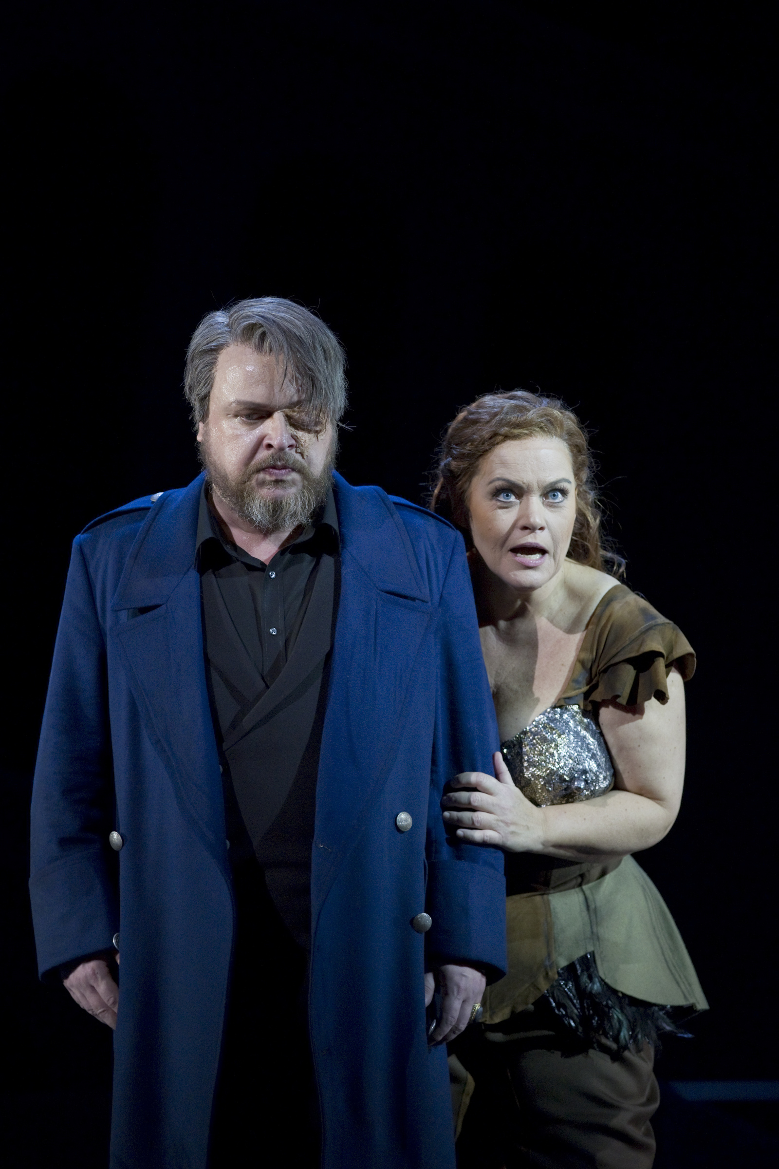 Das Rheingold HP1 Premiere 4.5.13, Tuomas Pursio (Wotan) & Karin Lovelius (Fricka) (Foto: Tom Schulze)