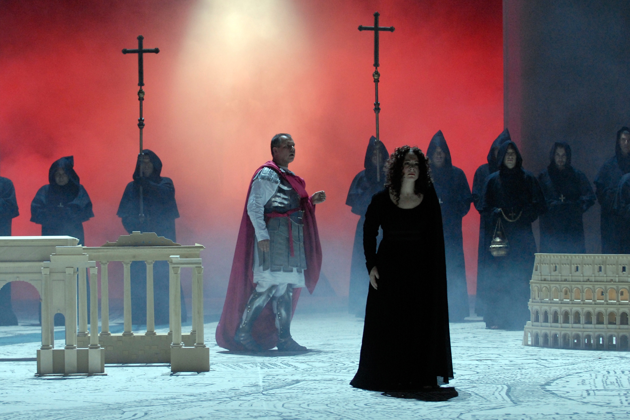 Nicolas Joels Inszenierung verwandelt die Handlung um den tragischen Helden in die Darstellung eines theatralisch begabten Politikers. Joel, seit 2009 Direktor der Pariser Oper inszenierte bereits an den Opernhäusern in Straßburg, Lyon, Chicago, Peking, Palermo und Toronto, an der Mailänder Scala, an der Londoner Covent Garden Opera, an der Metropolitan Opera New York (MET) und an der Wiener Staatsoper und wurde für seine Opernproduktionen mehrfach ausgezeichnet. Für die Ausstattung zeichnet ist der renommierte Bühnen- und Kostümbildner Andreas Reinhardt verantwortlich.