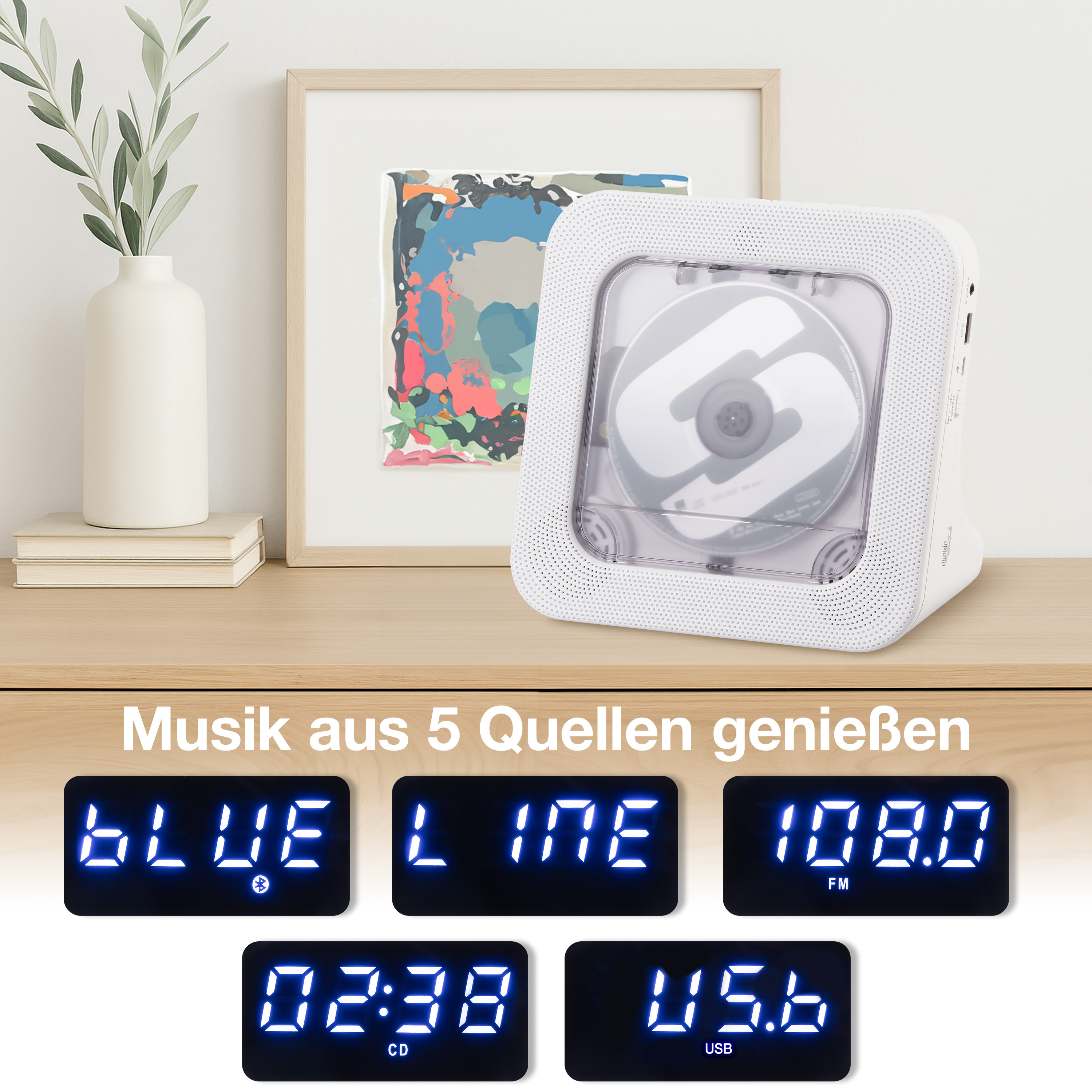 auvisio Tragbarer Akku-CD-Spieler & UKW-Radio, Bluetooth, Timer, USB, AUX