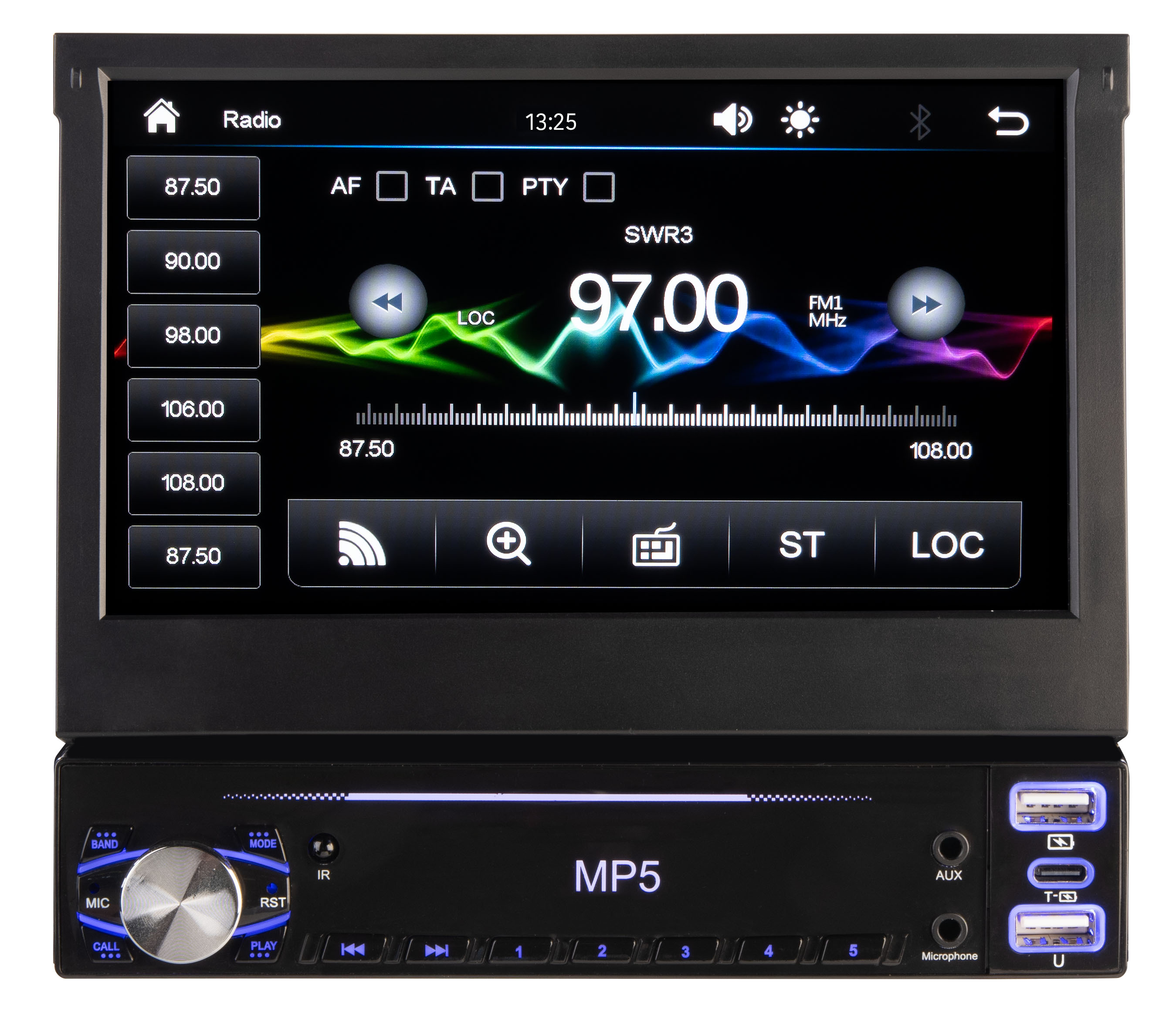 Unterstützt MP5 mit Full-HD-Auflösung: Eine Rast im Grünen machen und Videos und mehr hochauflösend im Auto genießen. Das Autoradio unterstützt verschiedene Videoformate und sorgt für eine gestochen scharfe Wiedergabe.