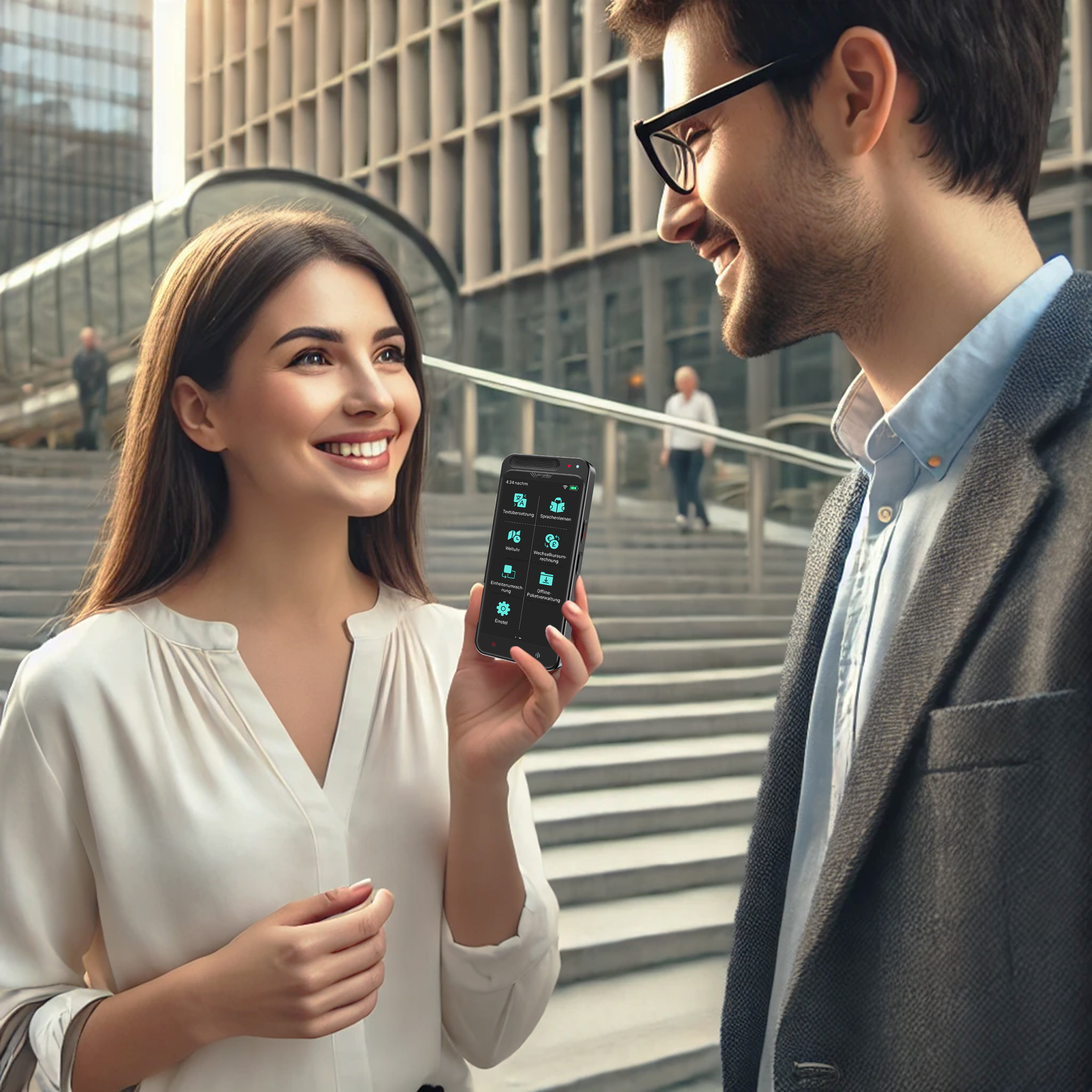Neue Möglichkeiten der Kommunikation: Ideal für Reisen, Geschäftstreffen und den Alltag. Der mobile KI- Echtzeit-Übersetzer von simvalley MOBILE überwindet Sprachbarrieren.