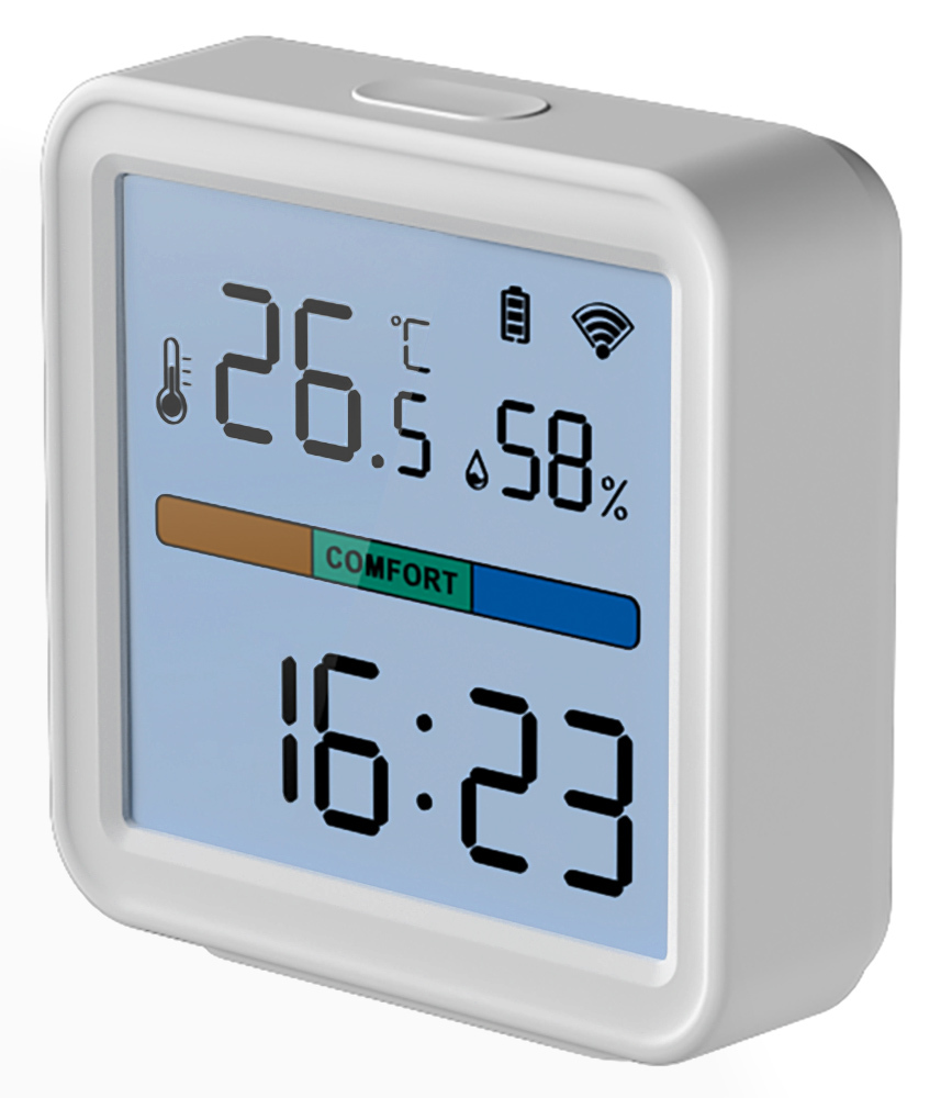 Das Hygrometer verfügt über eine Komfortzonenanzeige, die auf einen Blick erkennen lässt, ob die Raumluft zu feucht, zu trocken oder im idealen Bereich ist.