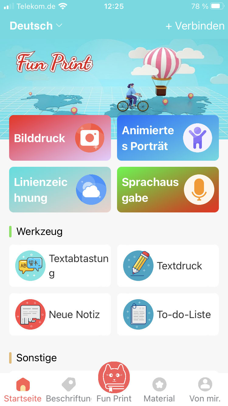 Die Steuerung erfolgt bequem über eine kostenlose App für Android und iOS. Die Verbindung zwischen Drucker und Smartphone erfolgt kabellos über Bluetooth.