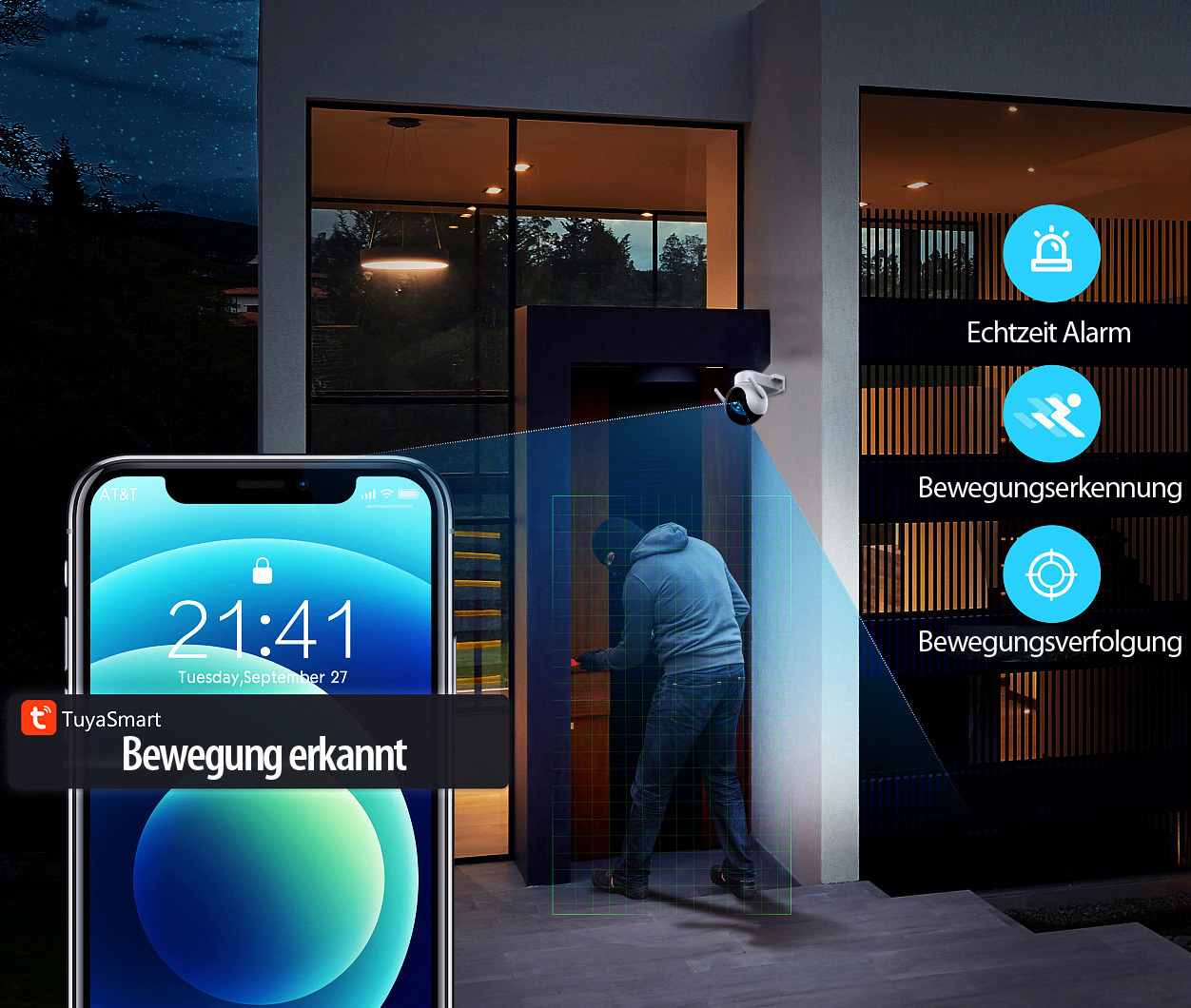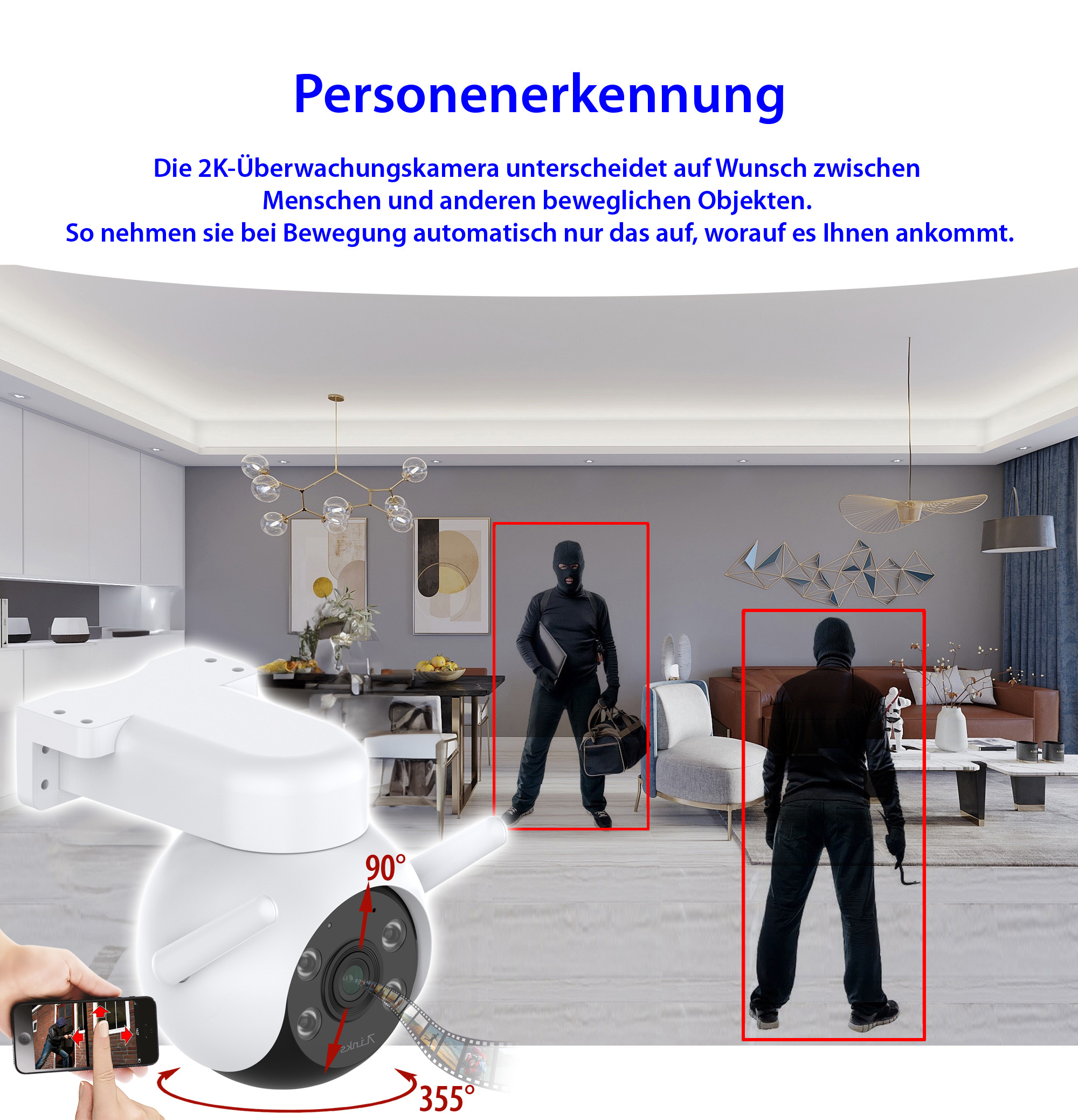 Automatische Überwachung durch PIR-Sensor: Die Outdoor-WLAN-IP-Überwachungskamera von 7links startet die Aufzeichnung automatisch, sobald eine Bewegung erkannt wird. Mit Hilfe der Schwenk-/Neigefunktion und der automatischen Objektverfolgung bleibt das erkannte Objekt immer im Bild. Bei aktivierter Patrouillenfunktion bewegt sich die Kamera zwischen voreingestellten Positionen und scannt kontinuierlich den gesamten Überwachungsbereich.