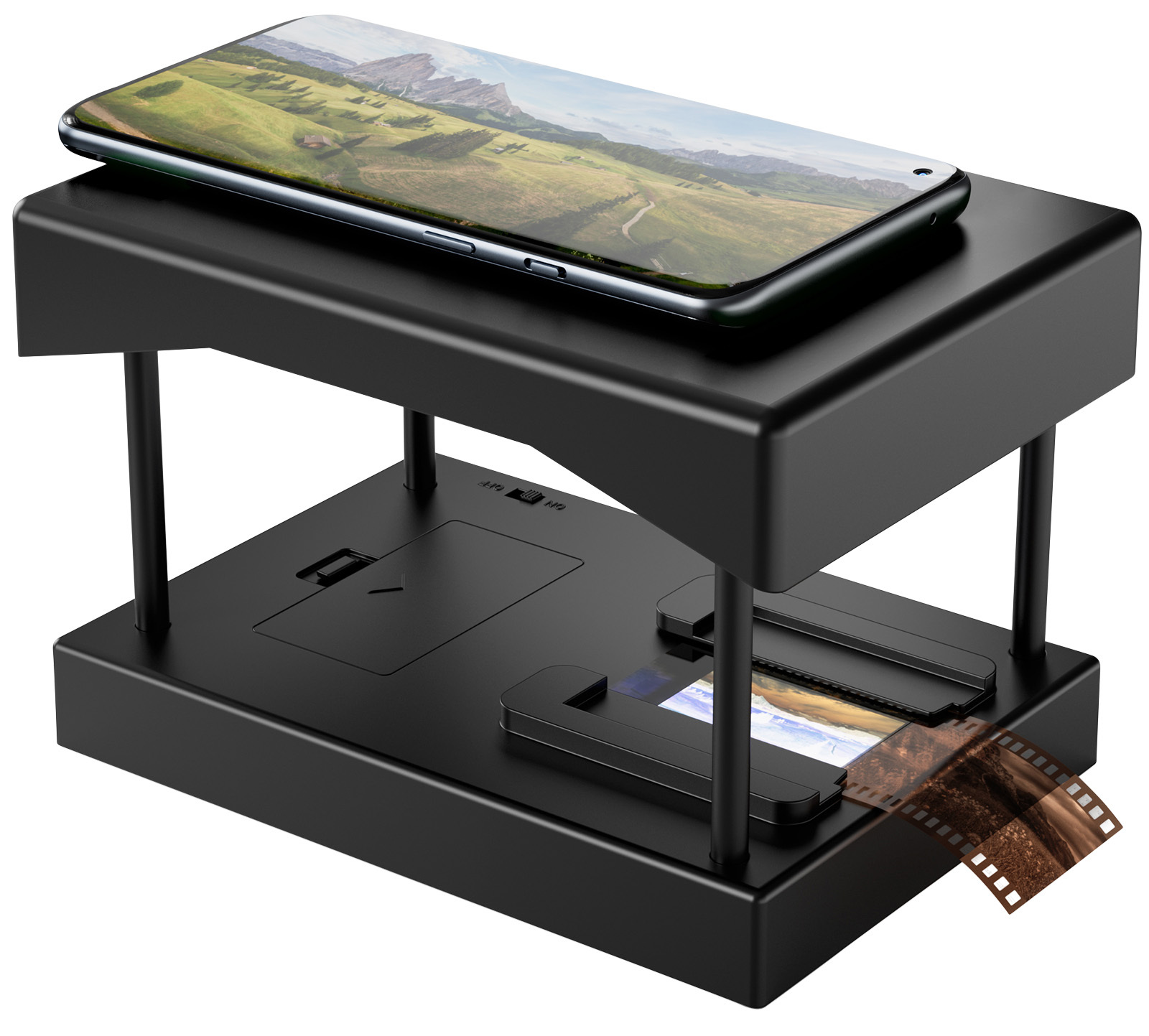 Mit wenigen Handgriffen ist die Scanhalterung aufgebaut. Nach dem Einlegen der Dias oder Negative wird das Smartphone positioniert und die Aufnahme gemacht. So können analoge Erinnerungen einfach für die Zukunft gesichert werden.