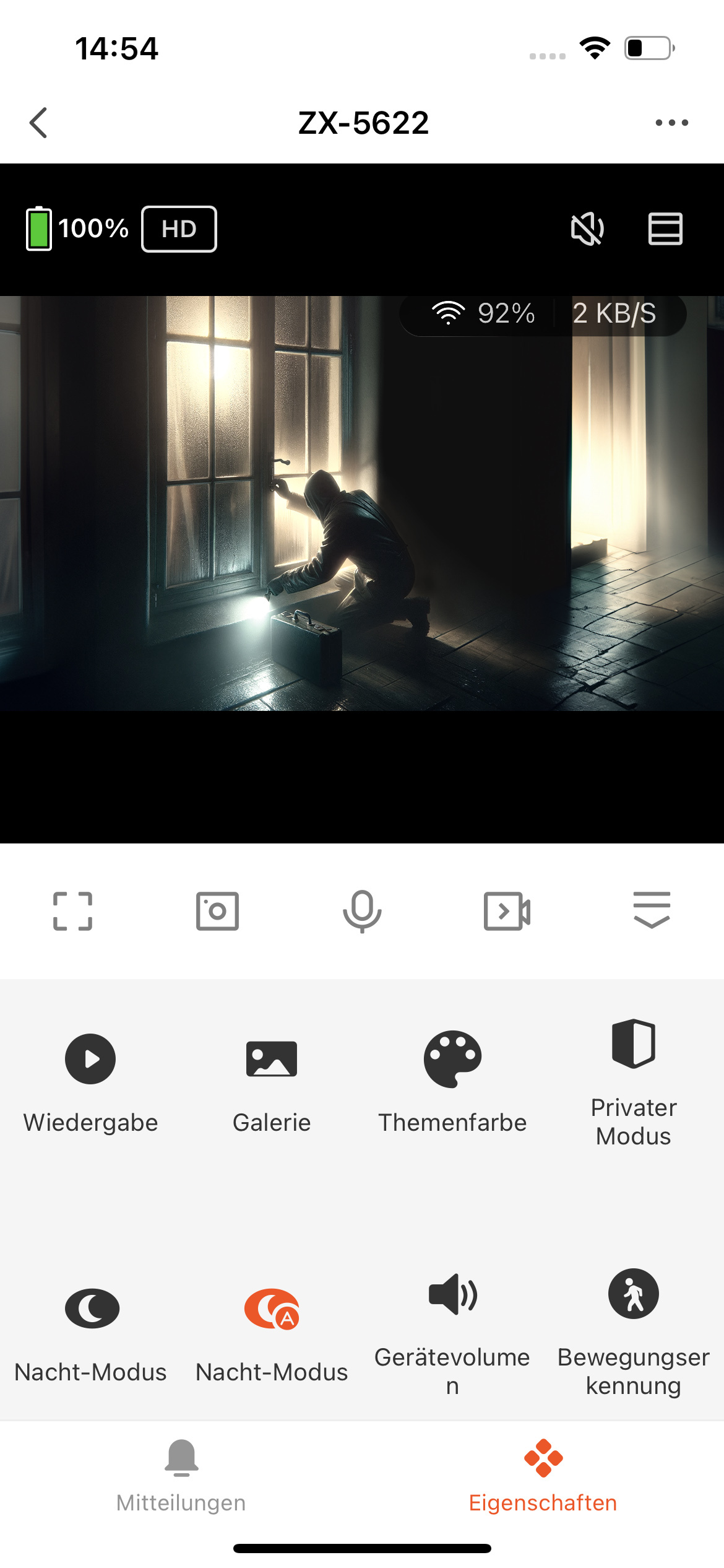 Die App bietet jederzeit und überall Zugriff auf die Kamera. Jede registrierte Bewegung wird direkt gemeldet und das Livebild kann jederzeit auf mobilen Geräten mit Android- oder iOS-Betriebssystem abgerufen werden.