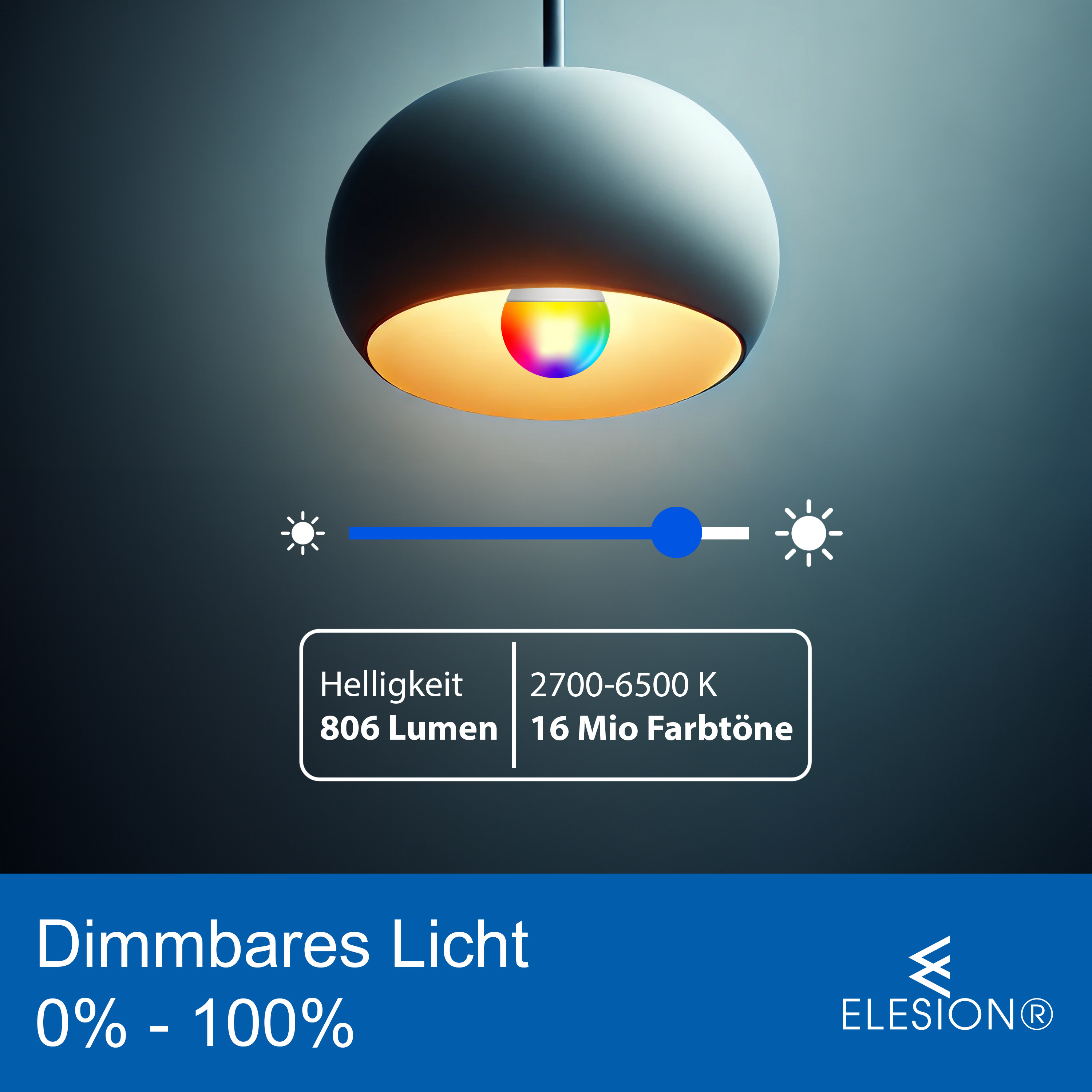 (lifepr) (Buggingen, 18.11.2024) Die WLAN-basierte E27-Lampe Luminea Home Control überzeugt durch Matter-Kompatibilität und vielseitige Steuerungsoptionen per App oder Sprachassistenten wie Alexa und Google Assistant. Mit 806 Lumen ersetzt sie herkömmliche 75-Watt-Glühlampen und bietet eine einstellbare Farbtemperatur von Warmweiß bis Tageslichtweiß sowie RGB-Farbmodi. Sie ist per App dimmbar, mit 9 Watt energieeffizient und ideal für Smart-Home-Systeme geeignet. Mit der kostenlosen ELESION App lässt sich die Leuchte von überall auf der Welt steuern.