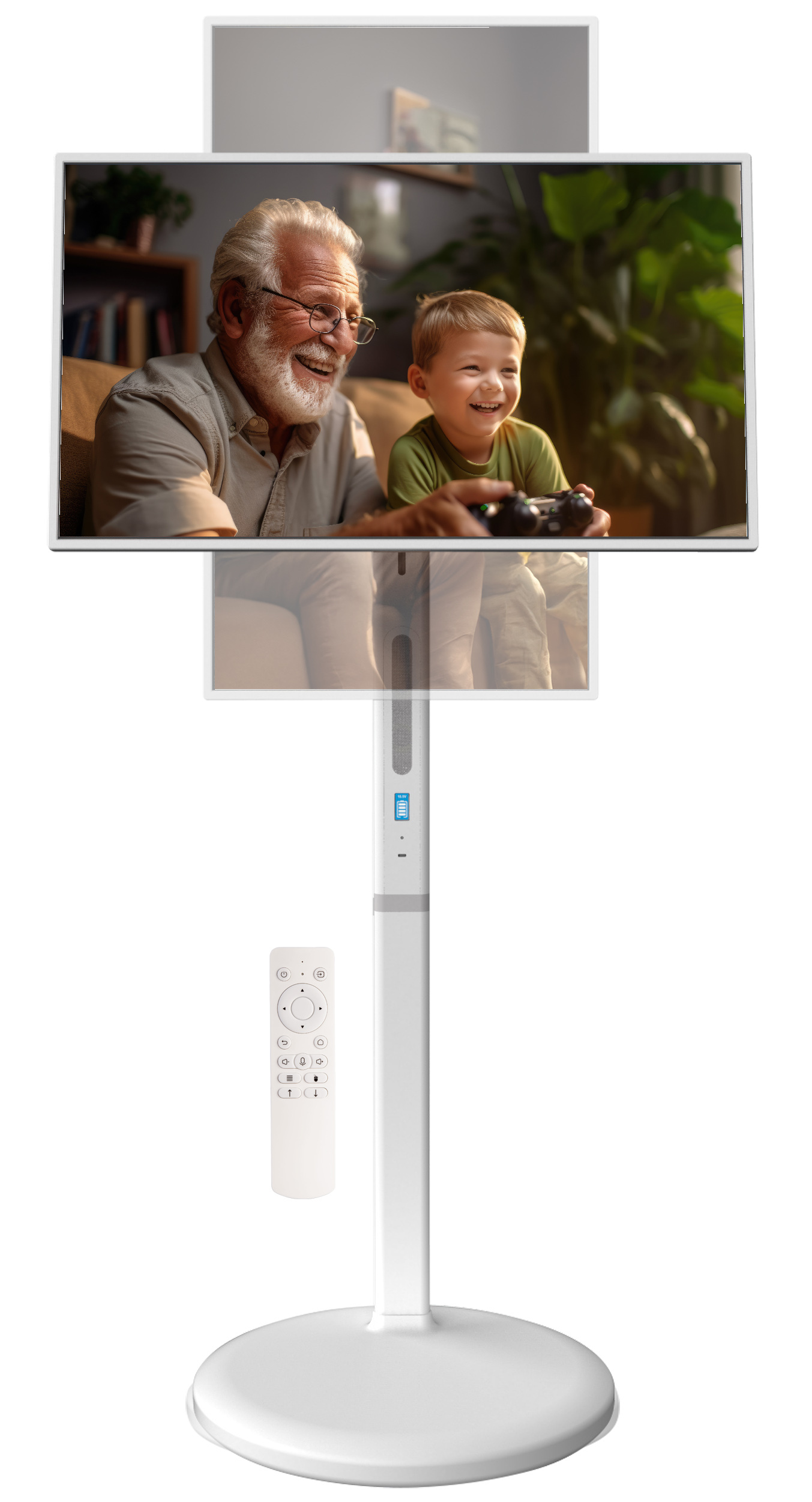 Mobilität und Flexibilität: Dank des eingebauten Akkus kann man den Bildschirm unabhängig von Steckdosen verwenden - bis zu 3,5 Stunden lang. Und mit den Rollen am Standfuß lässt er sich mühelos bewegen und umstellen. So nutzt man den Bildschirm tagsüber einfach als zweiten PC-Monitor im Home-Office und abends als Streaming-Bildschirm für den Serien-Feierabend.
