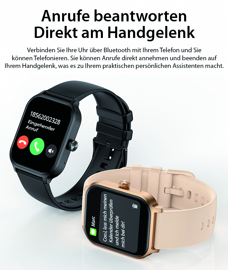 Die Smartwatch ist mit einem integrierten Mikrofon und Lautsprecher ausgestattet. Damit ist freihändiges Telefonieren direkt über die Uhr möglich, ohne das Smartphone in die Hand nehmen zu müssen.