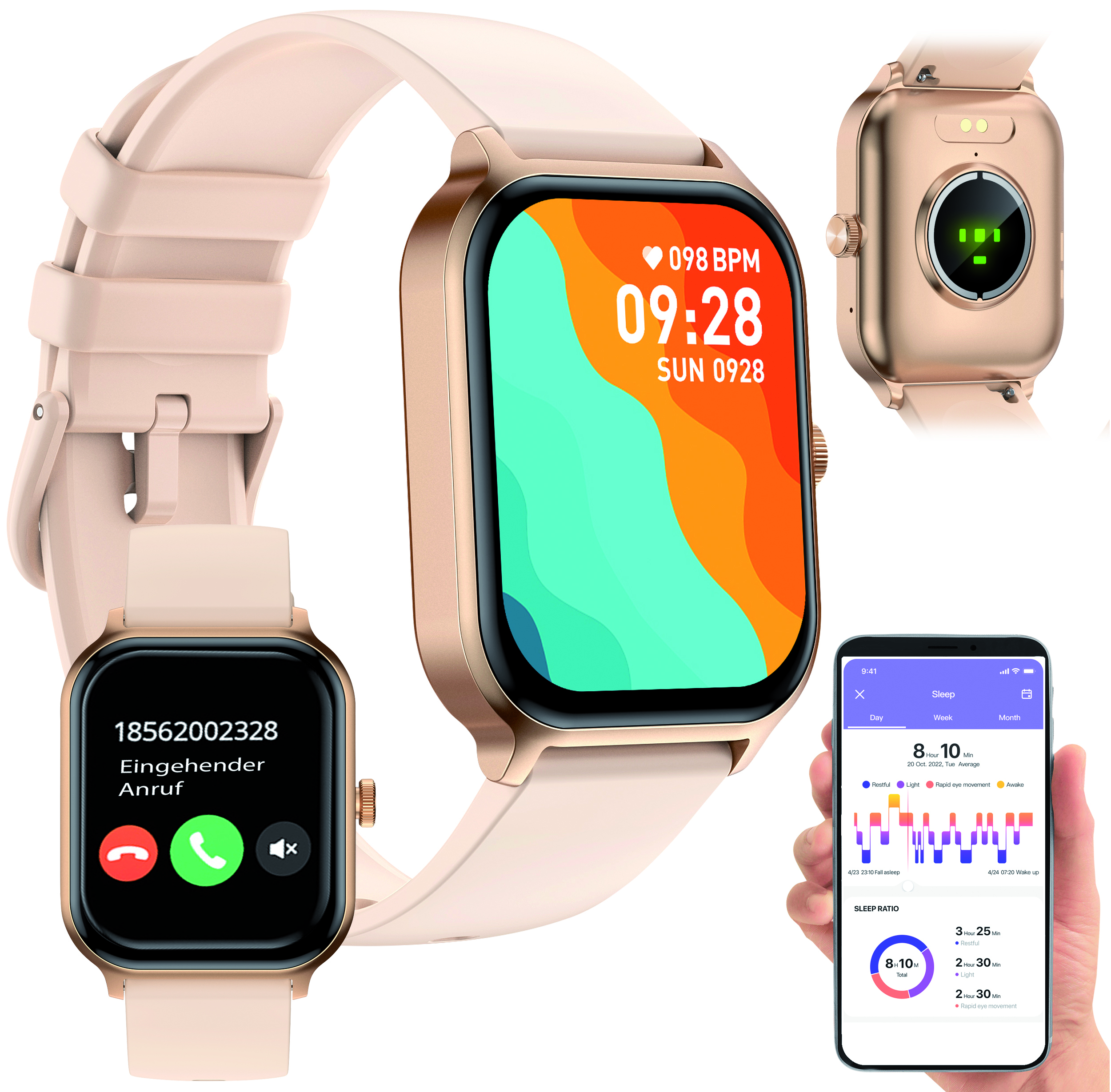 newgen medicals Fitness-Smartwatch PW-550 gold mit 1,93" Display, Freisprechen, 100 Sportmodi, App