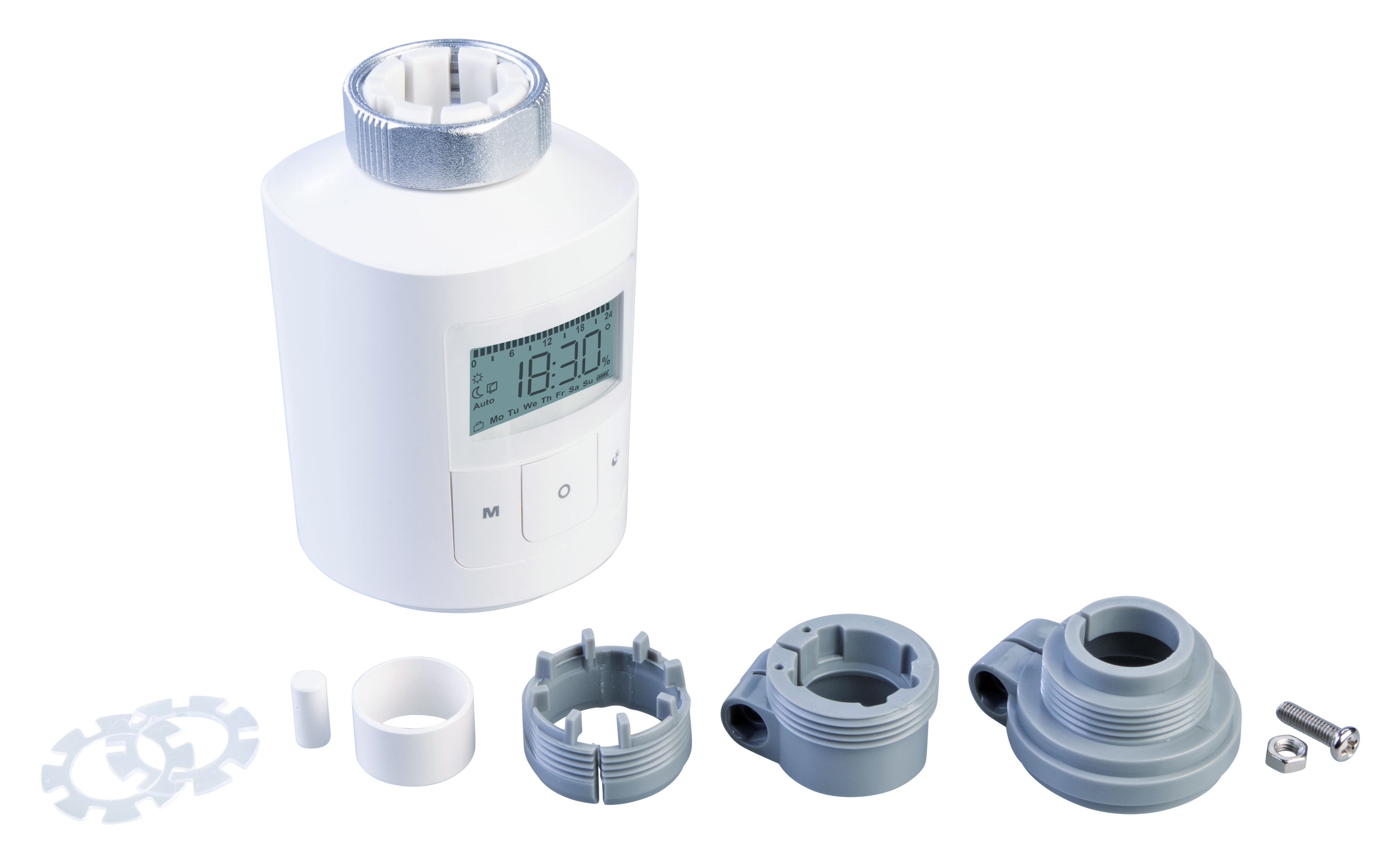 Die Montage des Thermostats erfordert weder Spezialwerkzeug noch Eingriffe in die Heizungsanlage. Die Umrüstung kann schnell und unkompliziert ohne Handwerker durchgeführt werden.