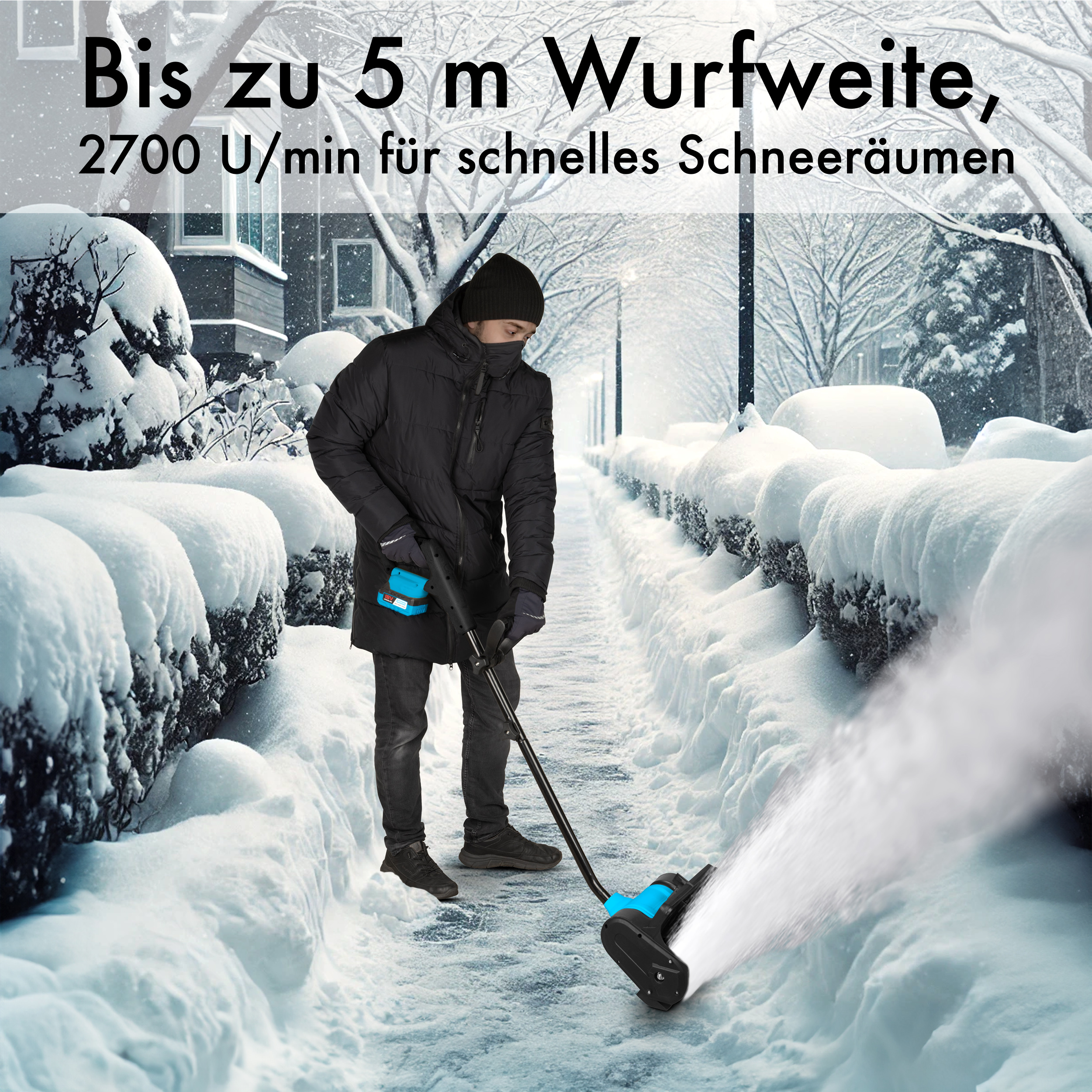 Die Akku-Schneefräse von AGT ermöglicht kabelloses und flexibles Schneeräumen auf Gehwegen, Einfahrten und Terrassen. Nach dem Einlegen des separat erhältlichen Akkus ist das Gerät sofort einsatzbereit.