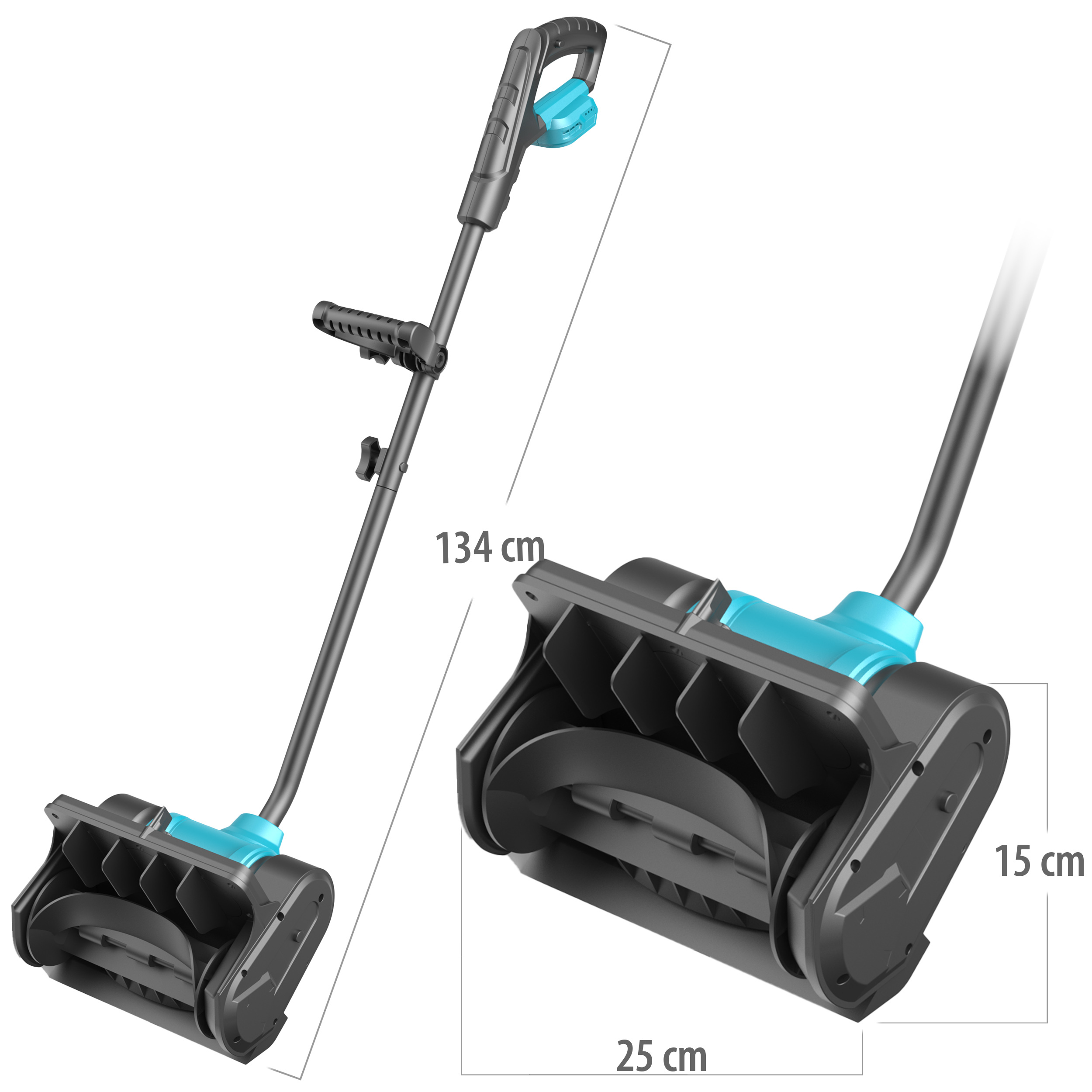Die Maße von 25 cm Räumbreite und 15 cm Räumtiefe ermöglichen eine gründliche Schneeräumung auch auf schmalen Wegen und in schwer zugänglichen Bereichen.