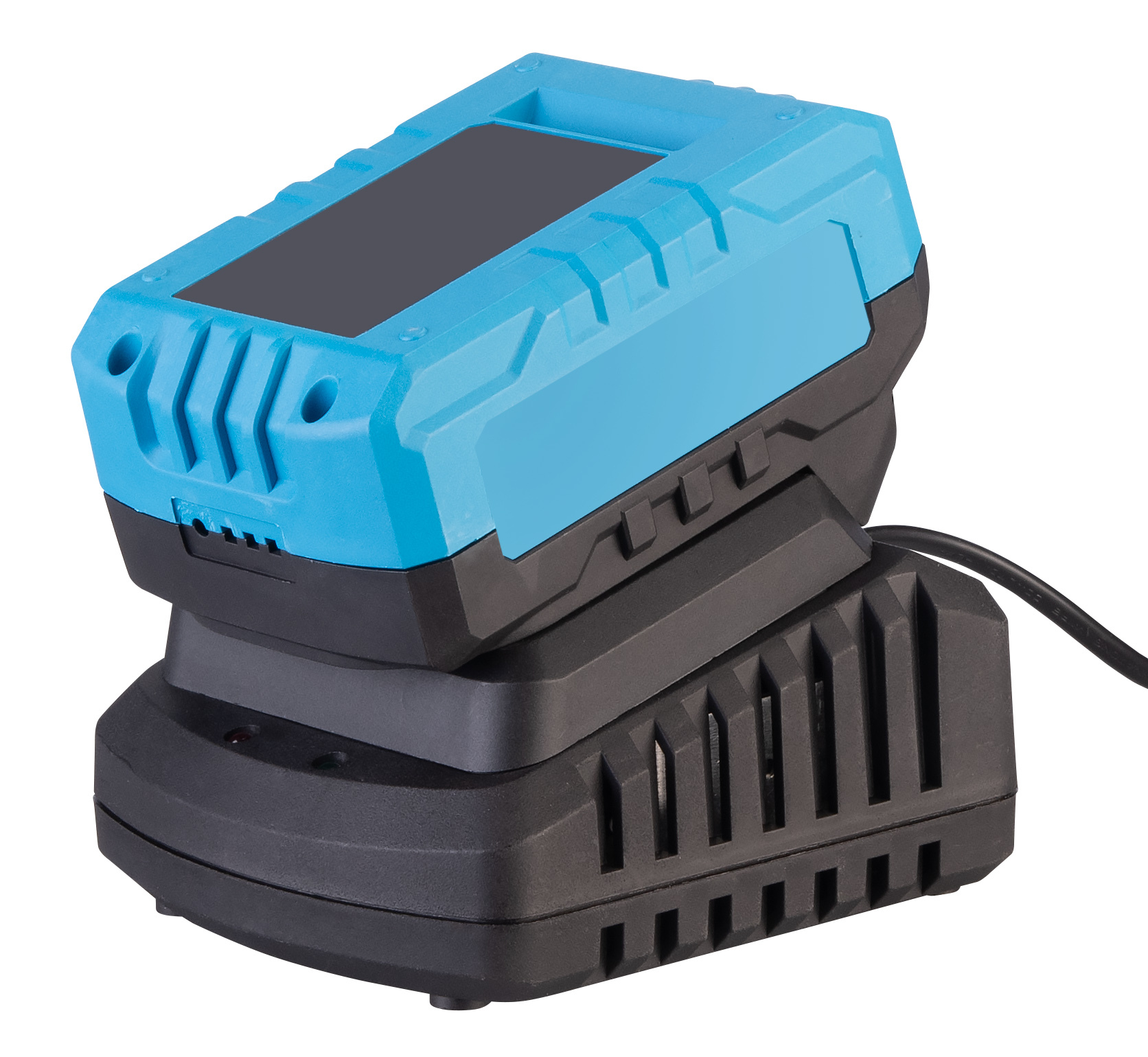 Das neue Ladegerät für 18-Volt-Akkus der Serie HSB-200 arbeitet mit einem Ladestrom von 2,3 Ampere bei 21 Volt. Eine integrierte Status-LED zeigt den aktuellen Ladezustand an.