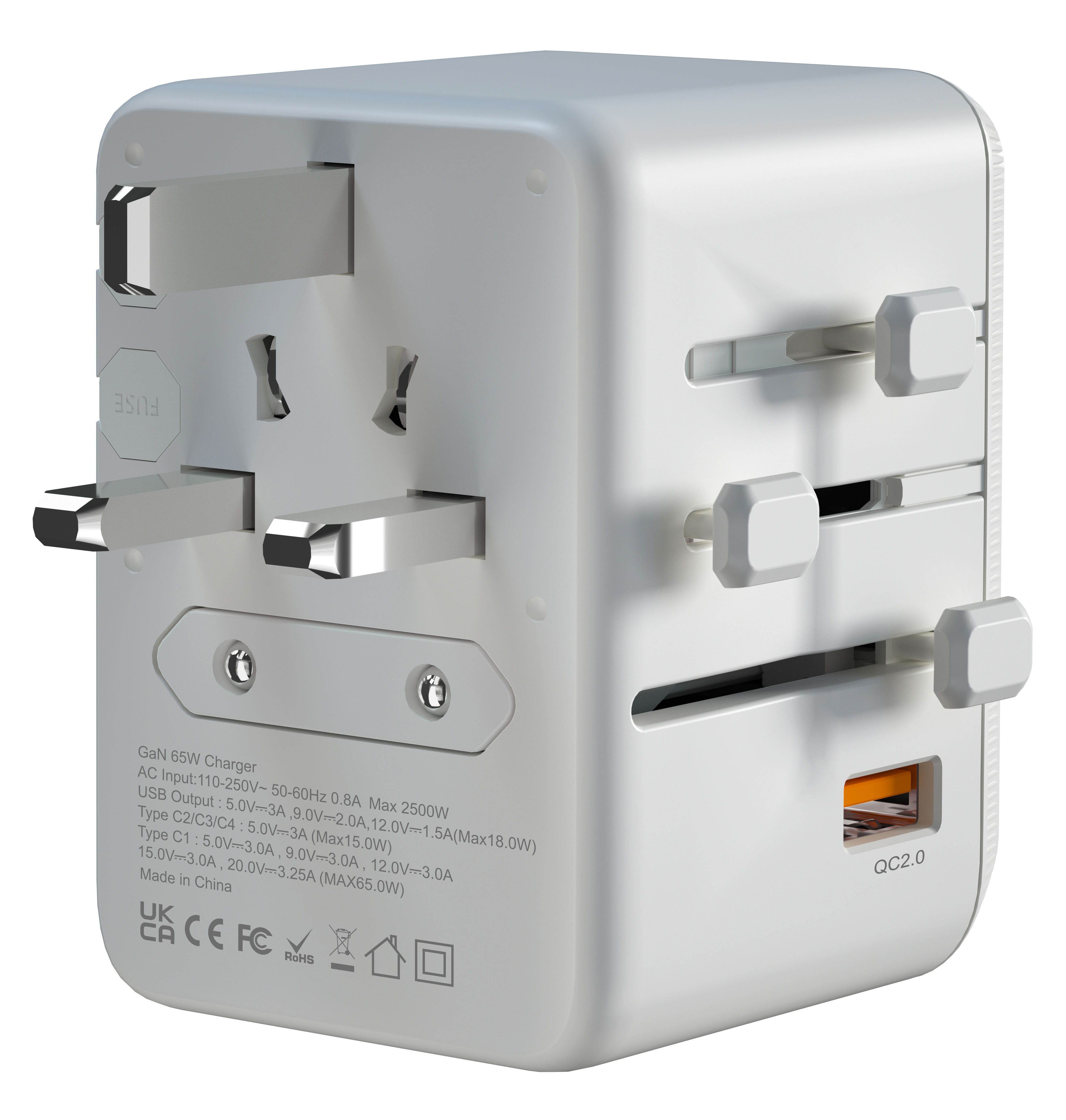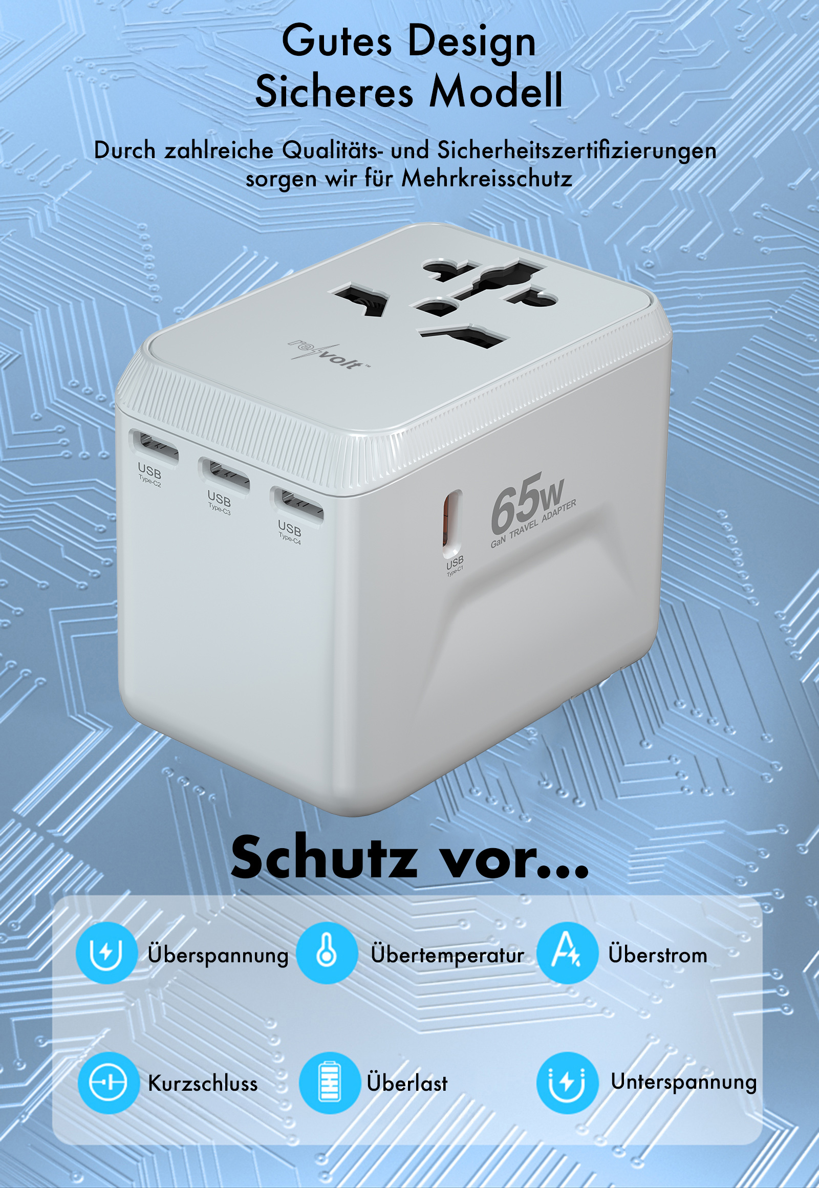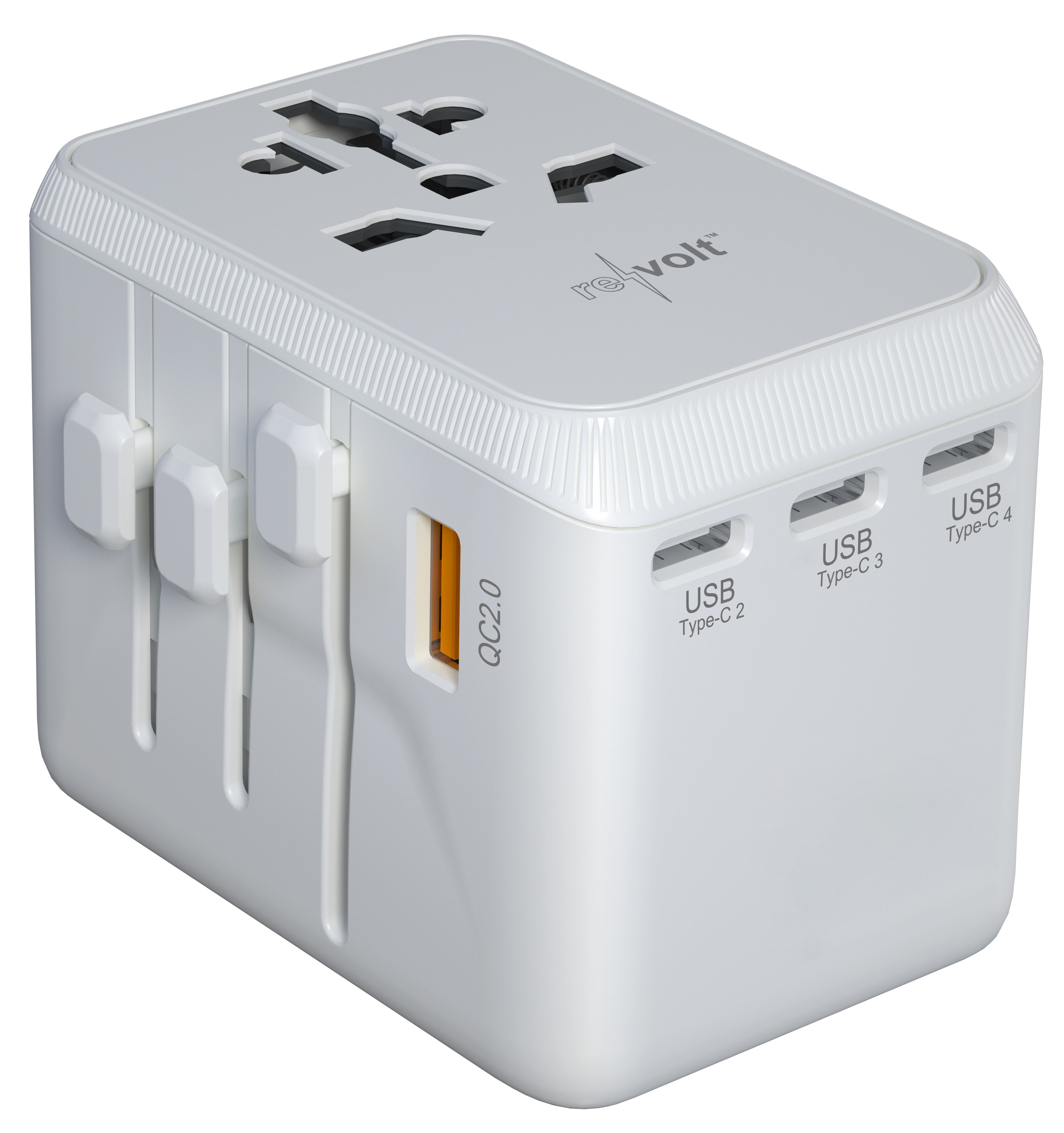 revolt 4er-Set Universal-Reiseadapter UTA-100, GaN, 4x USB-C, USB-A, PD 65 Watt