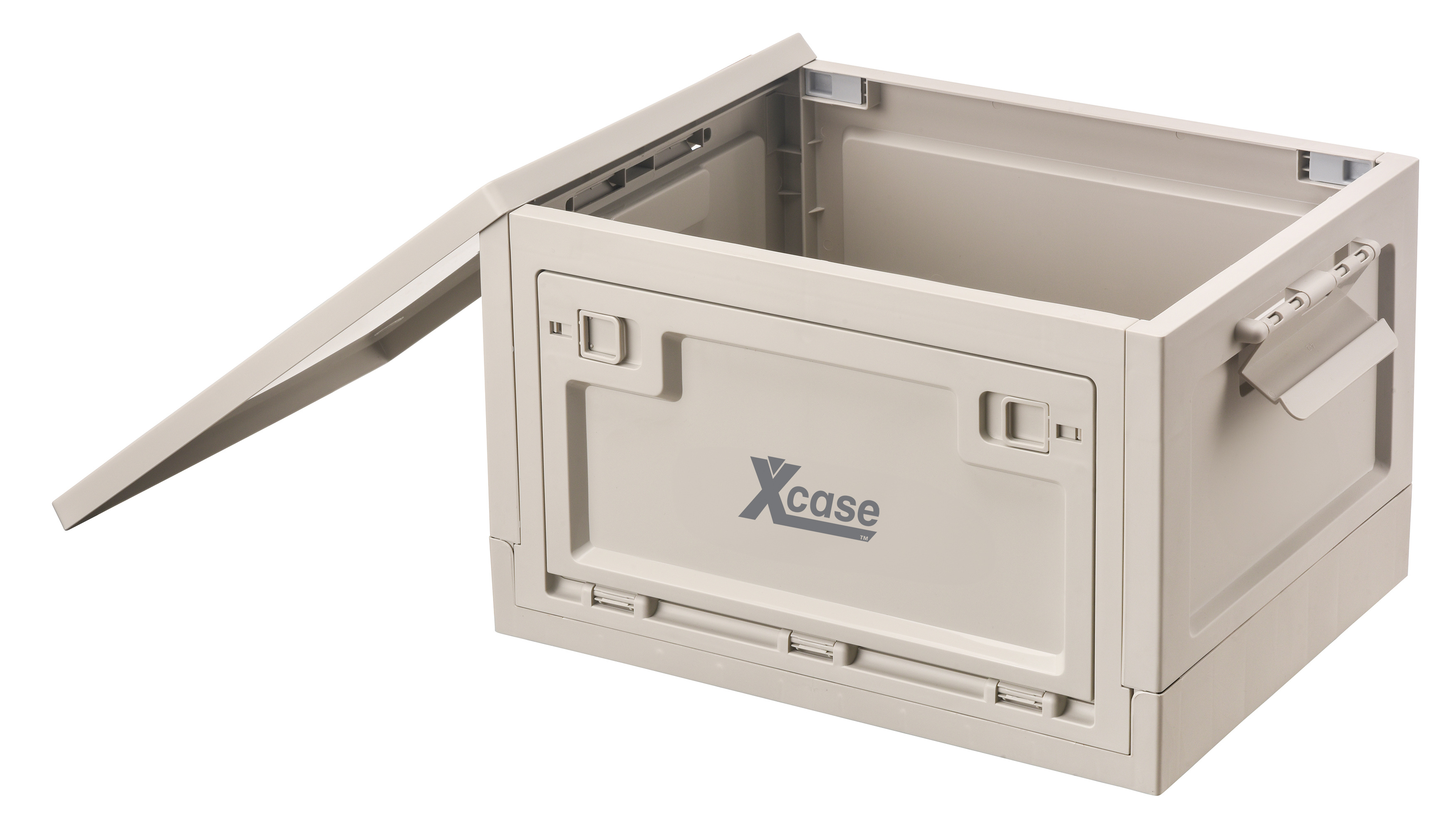 Das Aufbewahrungssystem von Xcase besteht aus stapelbaren Klappboxen mit Deckel zur systematischen Organisation von Werkzeug, Kabeln oder Kleidung. Die Boxen verfügen über seitliche Zugriffsklappen, die den Inhalt auch im gestapelten Zustand zugänglich machen.
