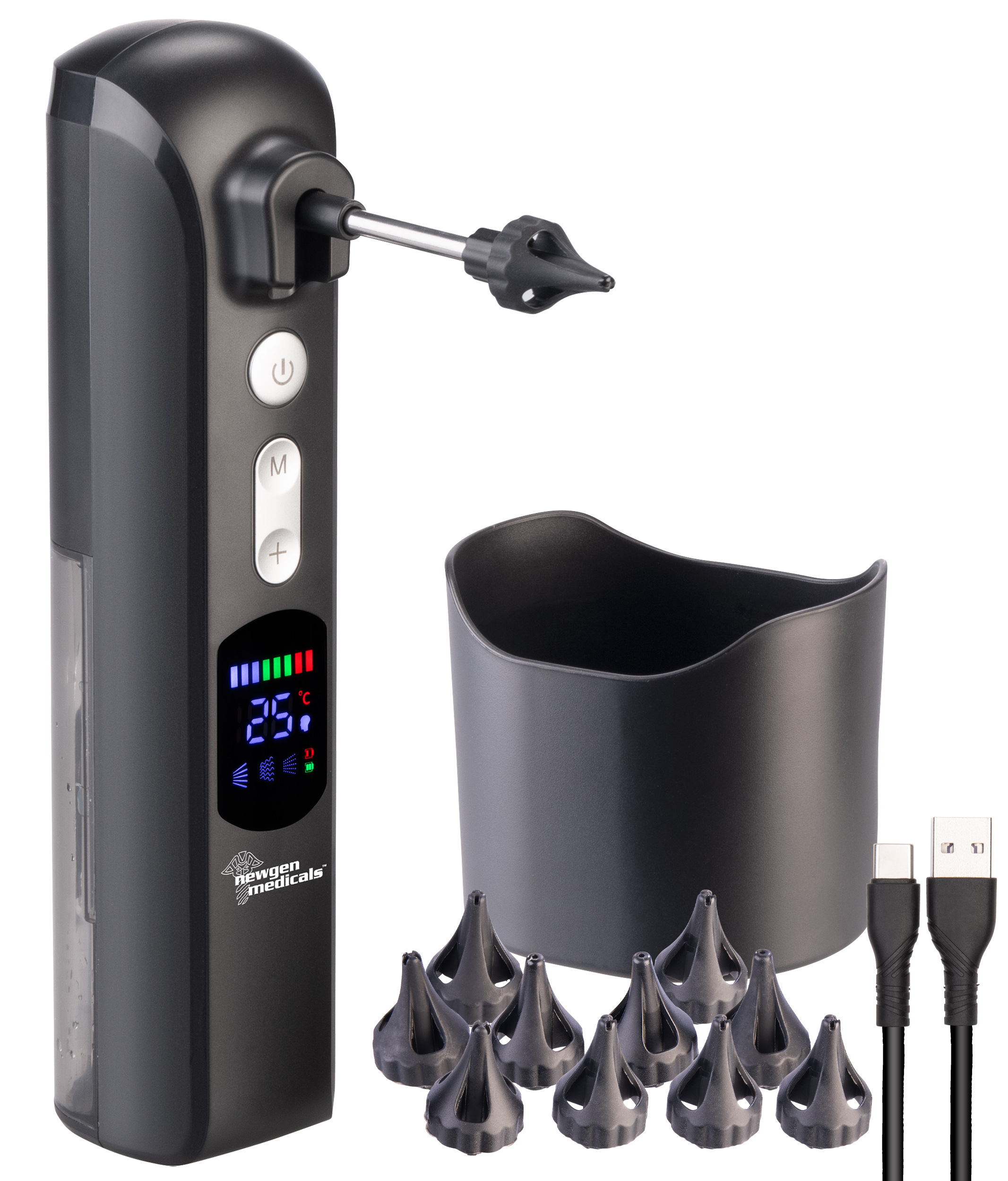 (lifepr) (Buggingen, 27.01.2025) Der Akku-Ohrreiniger von newgen medicals ermöglicht eine kontrollierte Reinigung des Gehörgangs mittels Wasserspülung. Das Gerät verfügt über drei Betriebsmodi mit jeweils acht Intensitätsstufen und bietet eine individuelle Anpassung der Reinigungsintensität. Ein Farbdisplay informiert über Temperatur, gewählten Modus, Reinigungsintensität und Batteriestatus. Der integrierte Akku gewährleistet eine Betriebsdauer von bis zu 4,5 Stunden. Das System ist wasserdicht nach IPX7-Standard und wird mit zehn verschiedenen Aufsätzen geliefert, die eine hygienische Anwendung auch durch mehrere Personen ermöglichen.