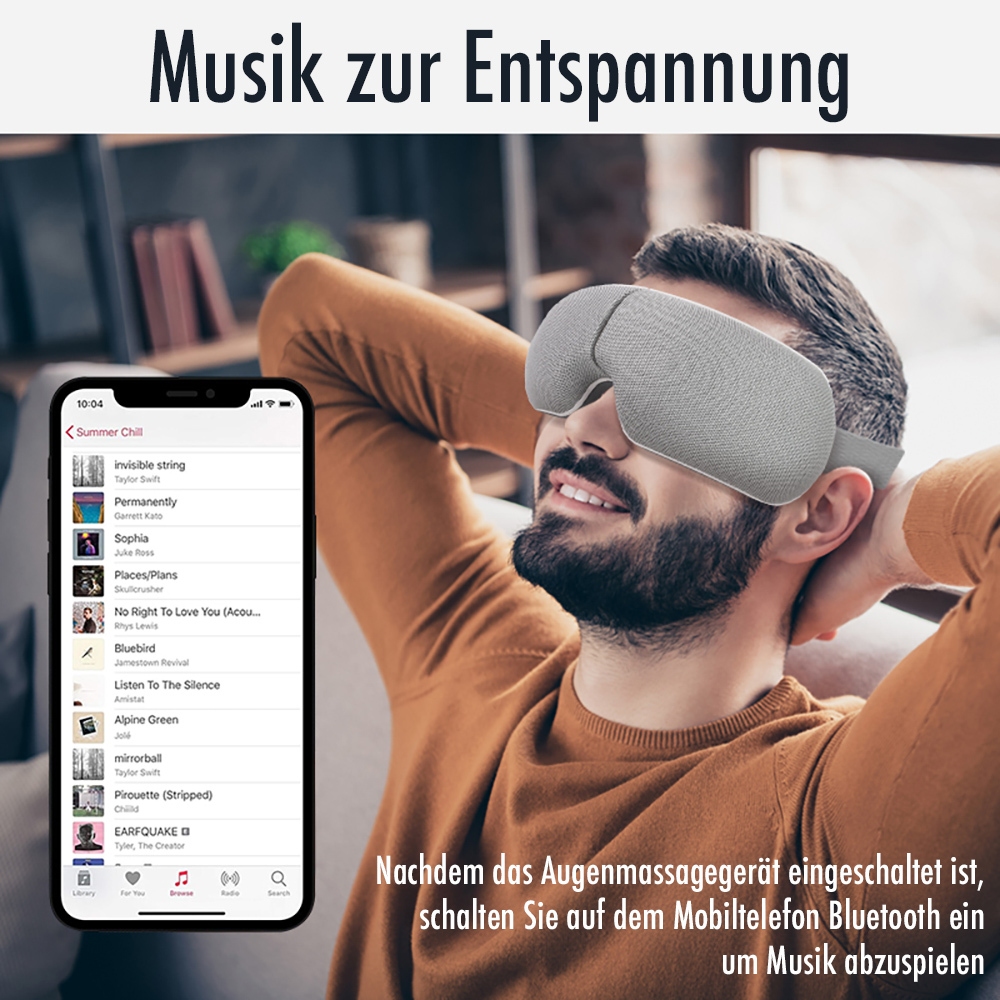 Gezielte Druckluftmassagen stimulieren die Akupressurpunkte rund um die Augen. Die sanfte Druckmassage kann helfen, Augenermüdung zu reduzieren und Verspannungen zu lösen. Vier wählbare Massageprogramme ermöglichen eine individuelle Anpassung der Intensität.