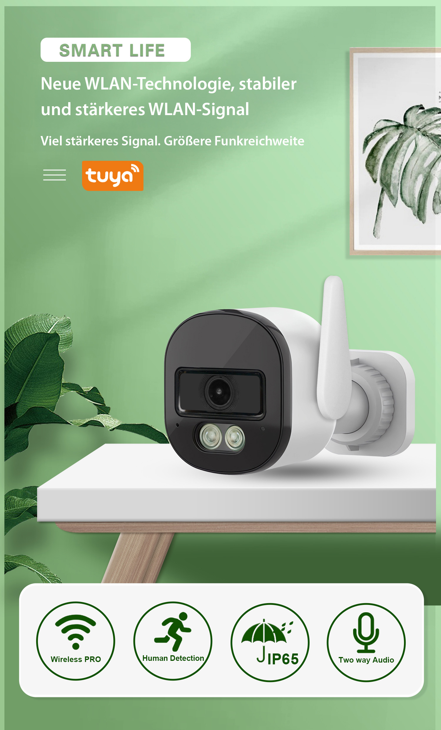 Die im Lieferumfang enthaltenen Kameras nutzen die moderne WLAN-6-Technologie, um eine schnelle und stabile Verbindung zu gewährleisten. Eine integrierte Repeater-Funktion verlängert das Signal von Kamera zu Kamera, so dass auch große Flächen lückenlos abgedeckt werden können.