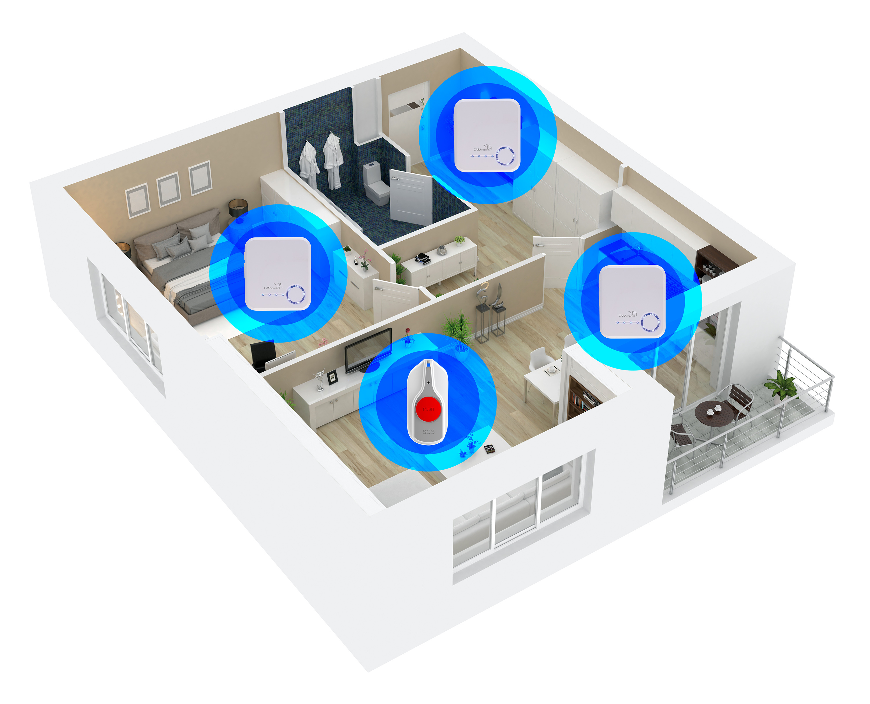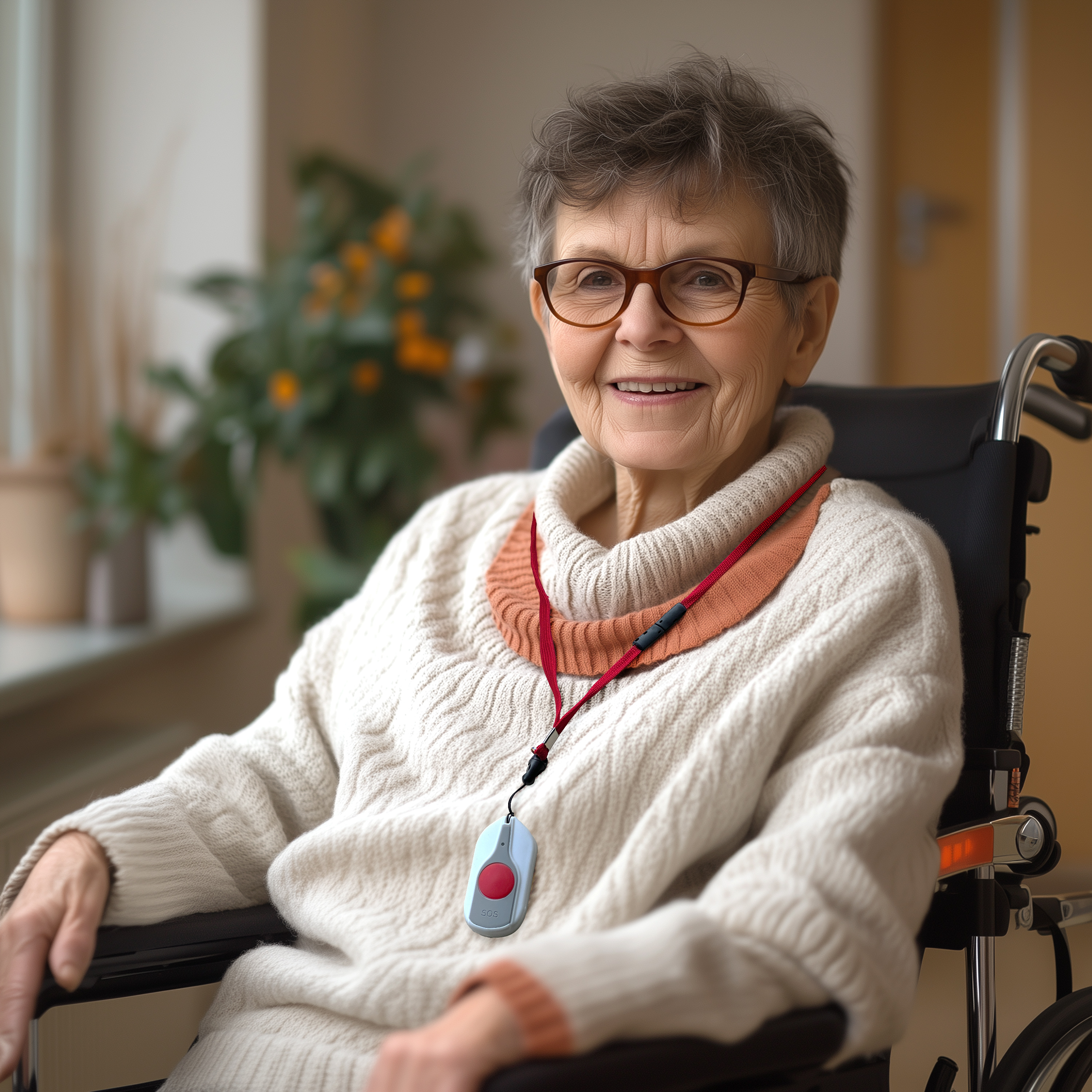 Mit einer Funkreichweite von bis zu 180 Metern zwischen Sender und Empfänger bleibt die Verbindung auch über mehrere Stockwerke oder in größeren Gebäuden stabil. Die Sender sind mit einer großen, gummierten roten Notruftaste ausgestattet und spritzwassergeschützt. Dadurch ist eine einfache Bedienung auch für Personen mit motorischen Einschränkungen gewährleistet.