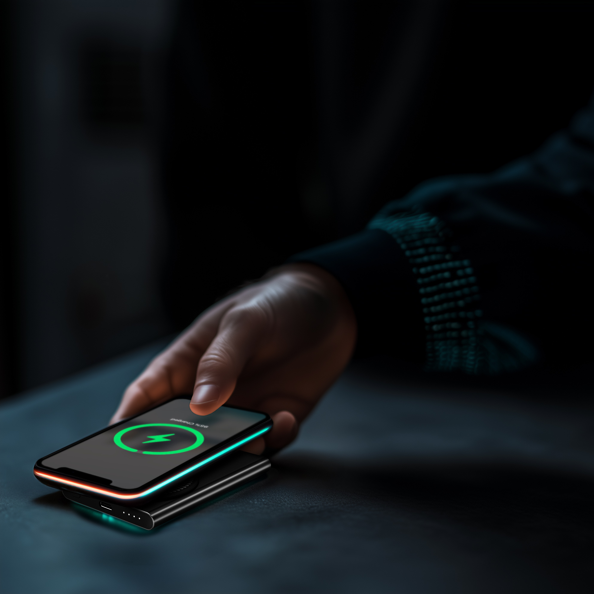 Die kabellose Ladefunktion ermöglicht das komfortable Aufladen kompatibler Smartphones über die Qi-Technologie. Der Ladevorgang startet automatisch mit bis zu 15 Watt. Dank MagSafe-Technologie haftet das Gerät magnetisch an der Powerbank und sorgt so für sicheren Halt und optimale Ausrichtung.