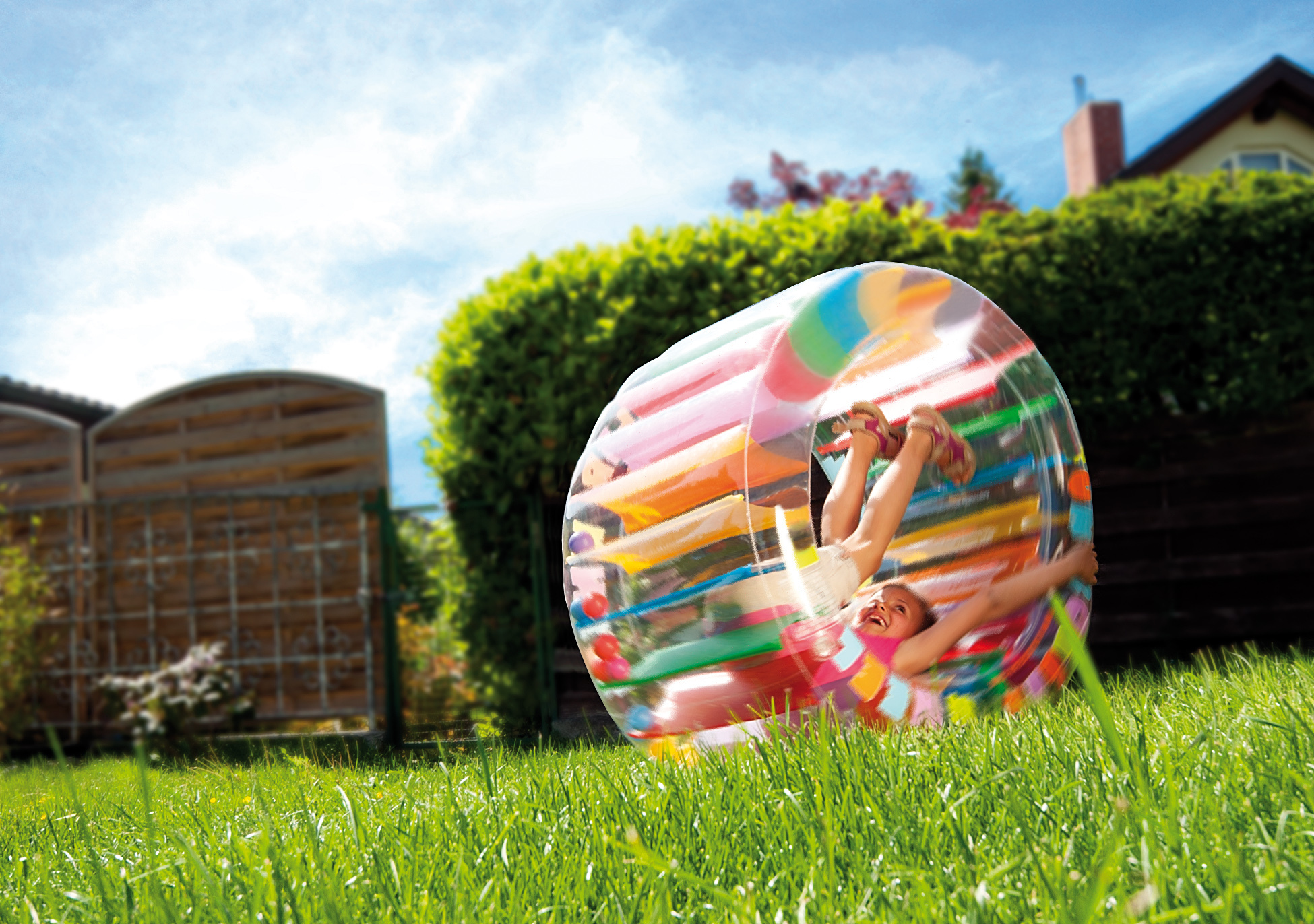 Durch die aufblasbare Konstruktion lässt man beim Zorbing-Rad nach Gebrauch einfach die Luft raus und verstaut es platzsparend.